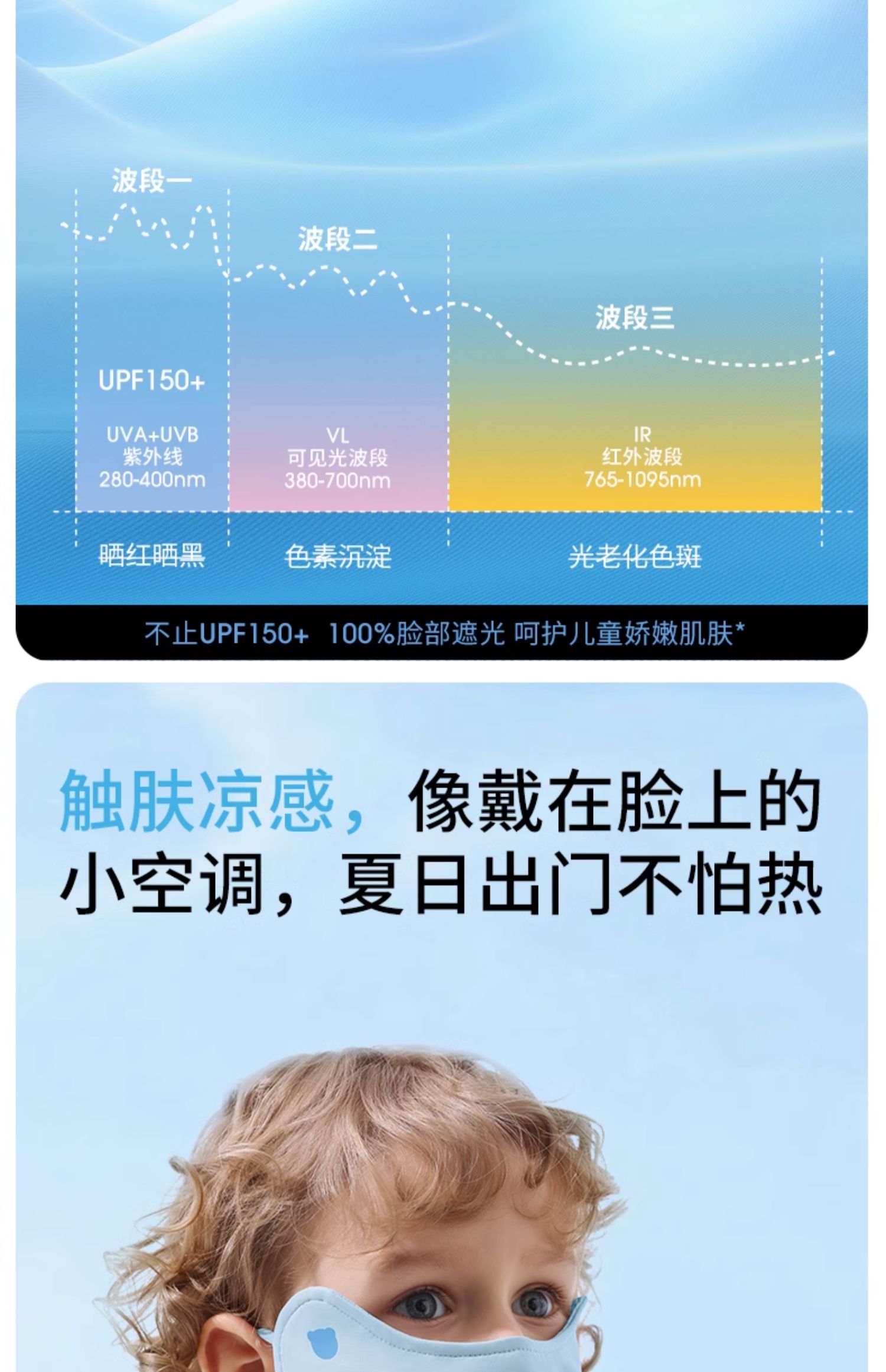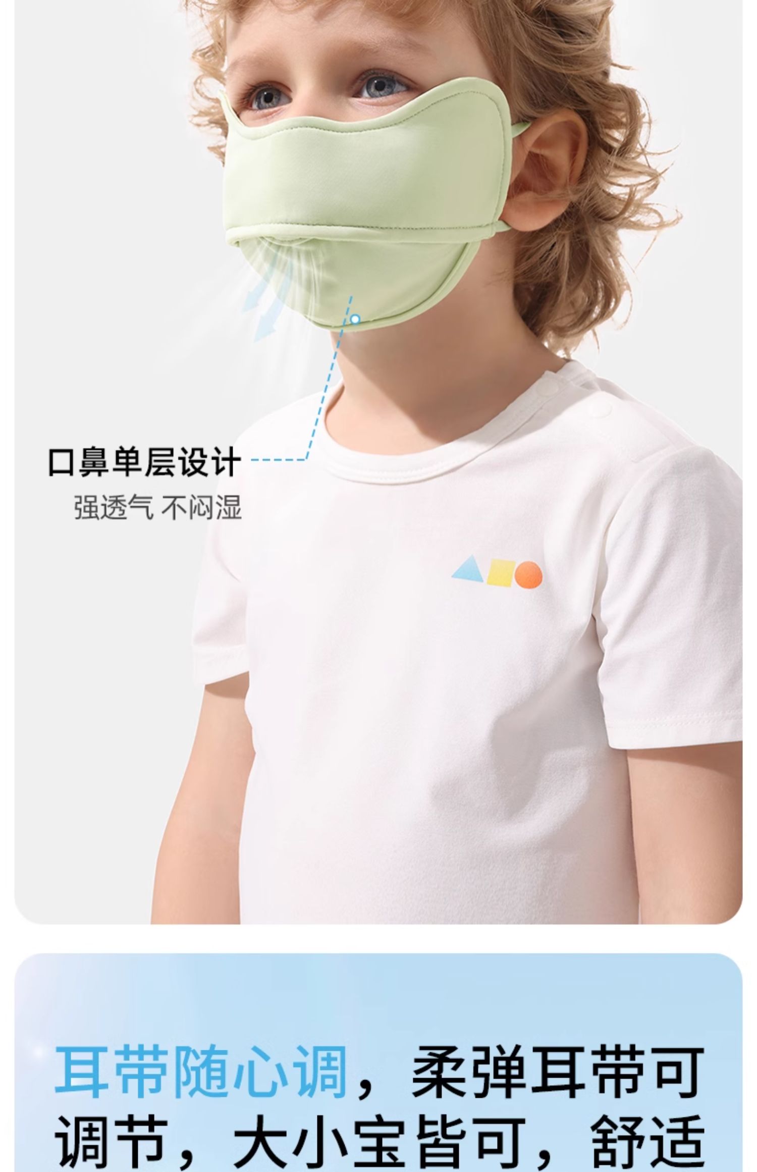 贝肽斯儿童防晒口罩婴儿可洗口罩夏季薄款防护面罩宝宝口罩2024