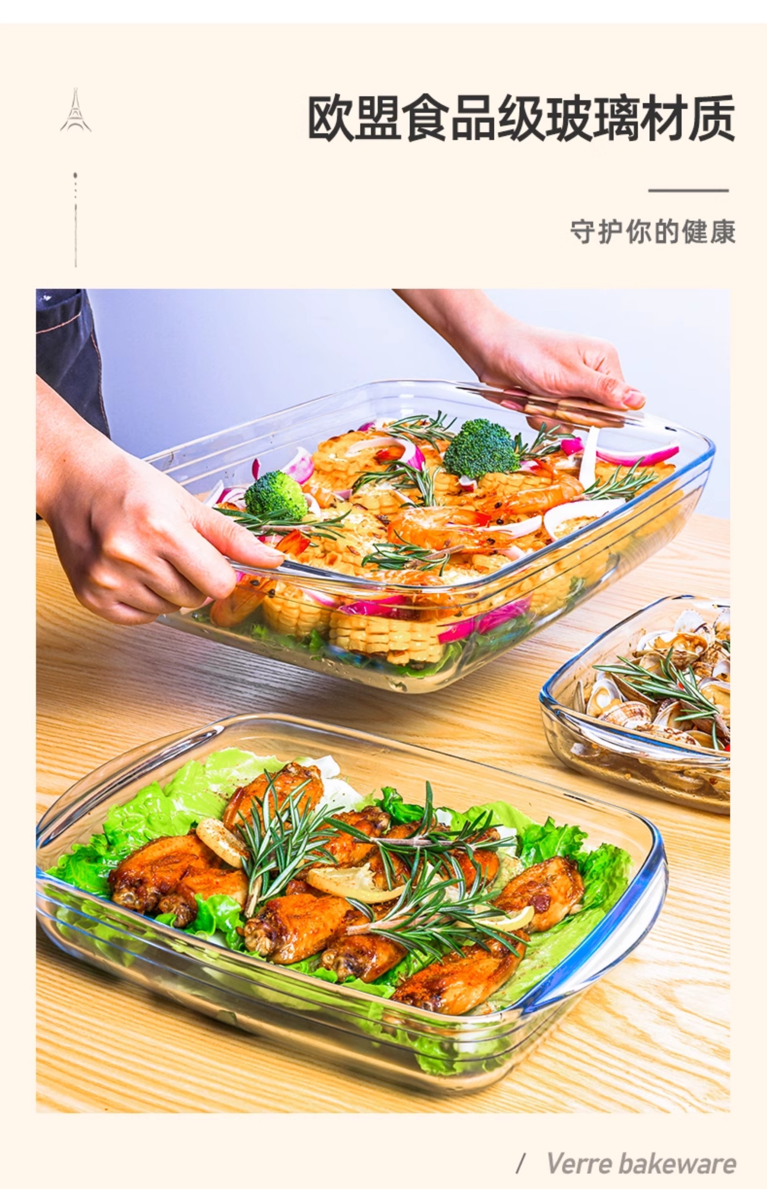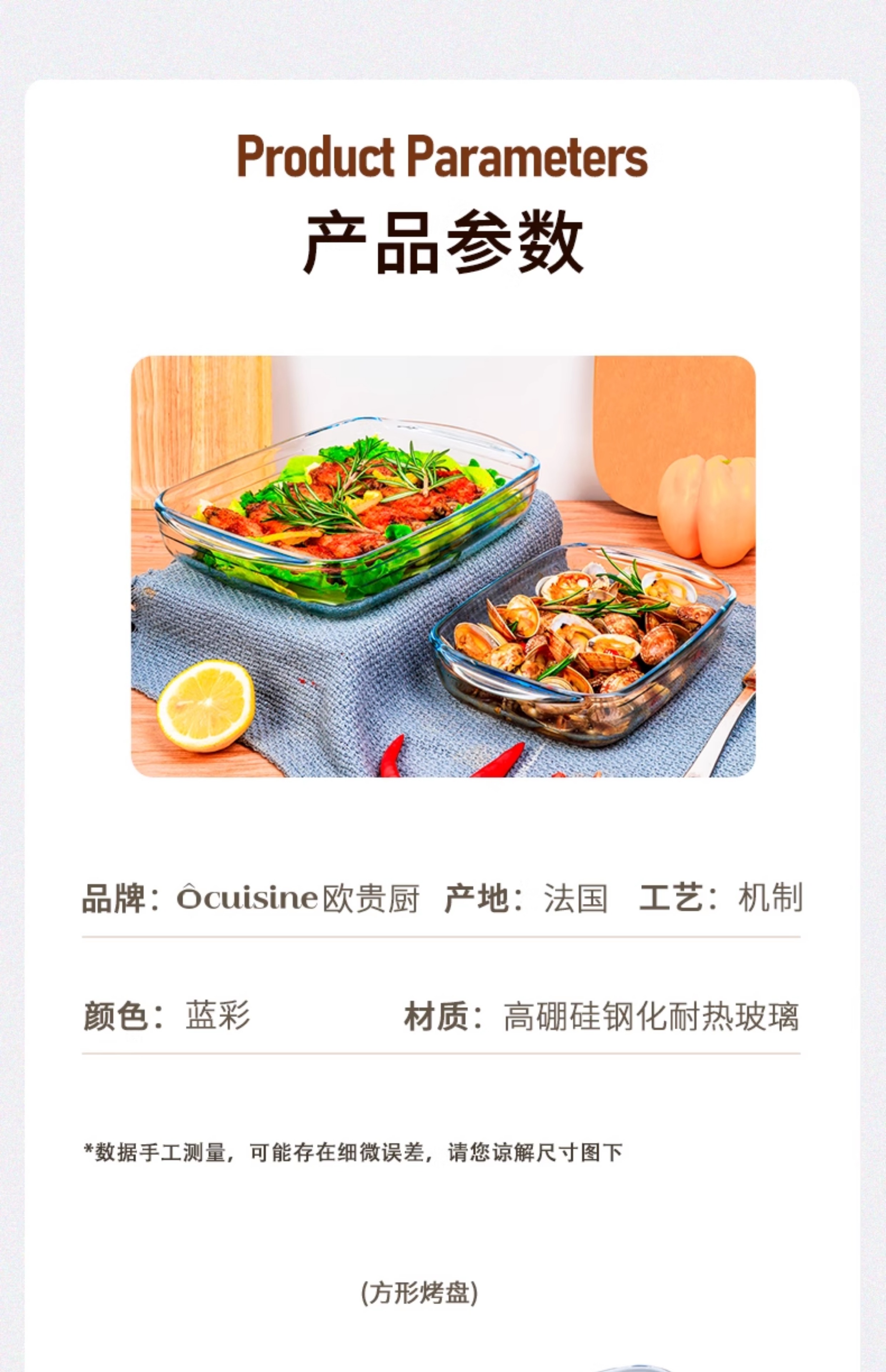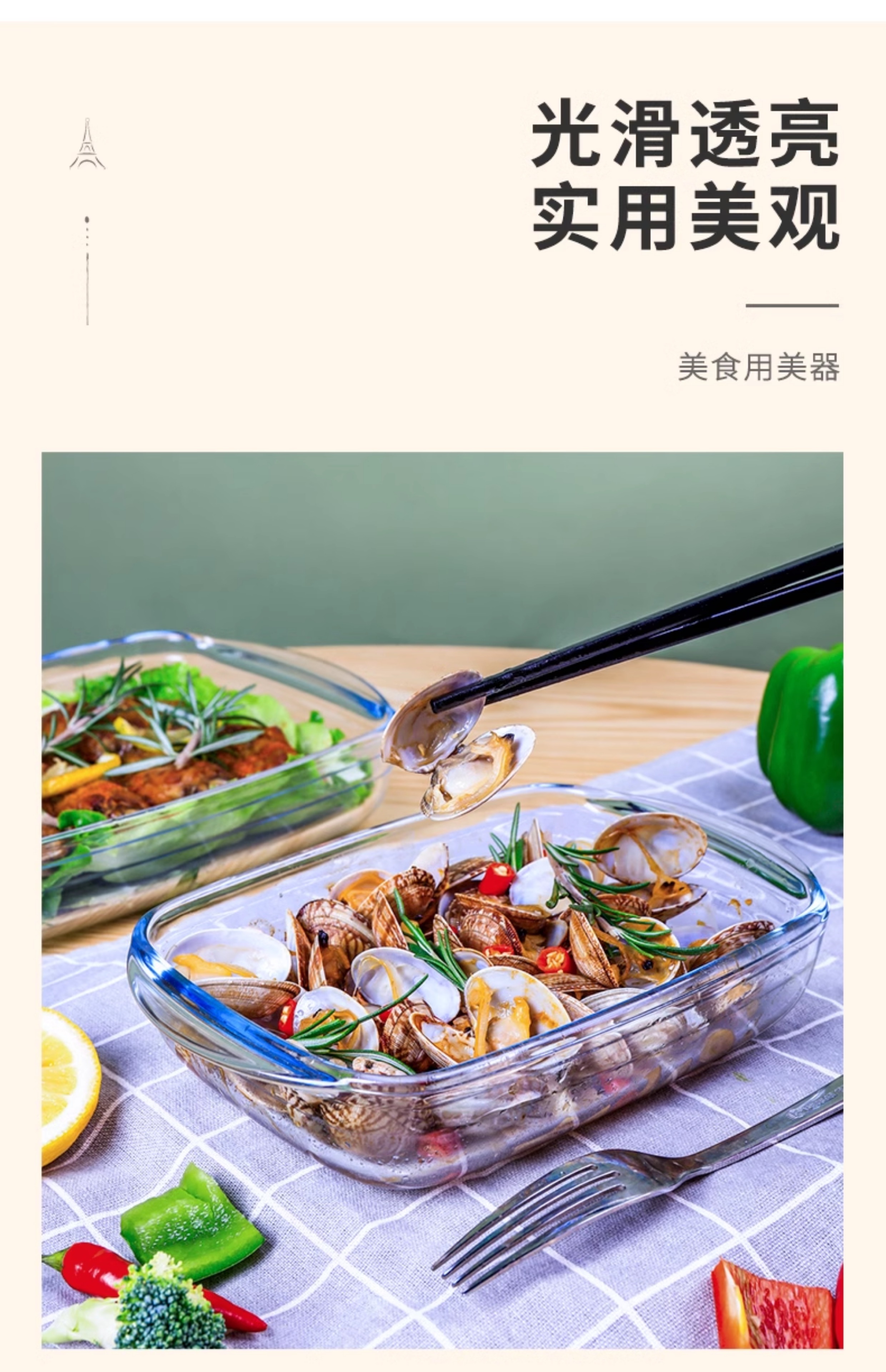 欧贵厨长方形玻璃烤盘烤箱微波炉适用35CM2.6L