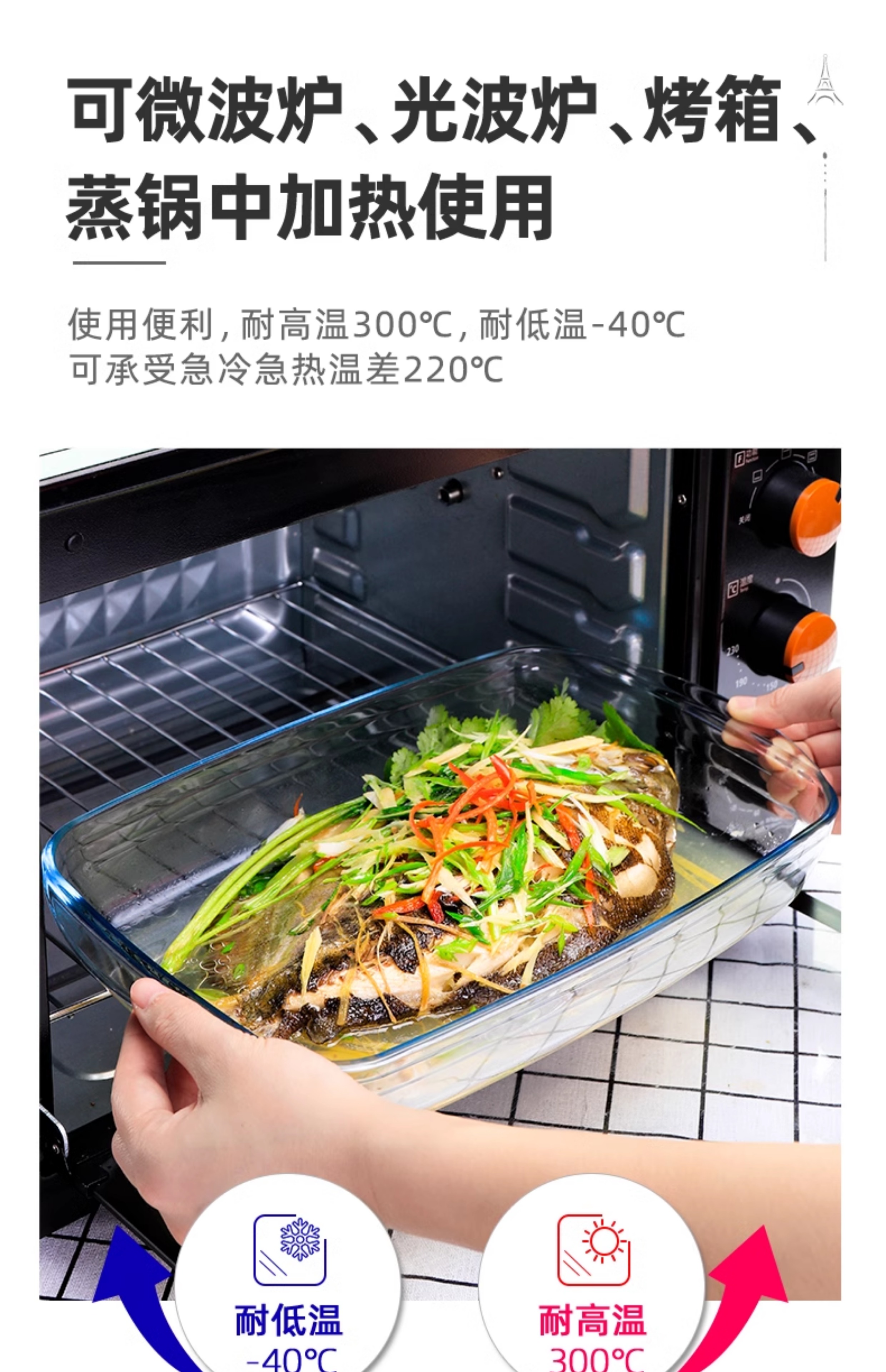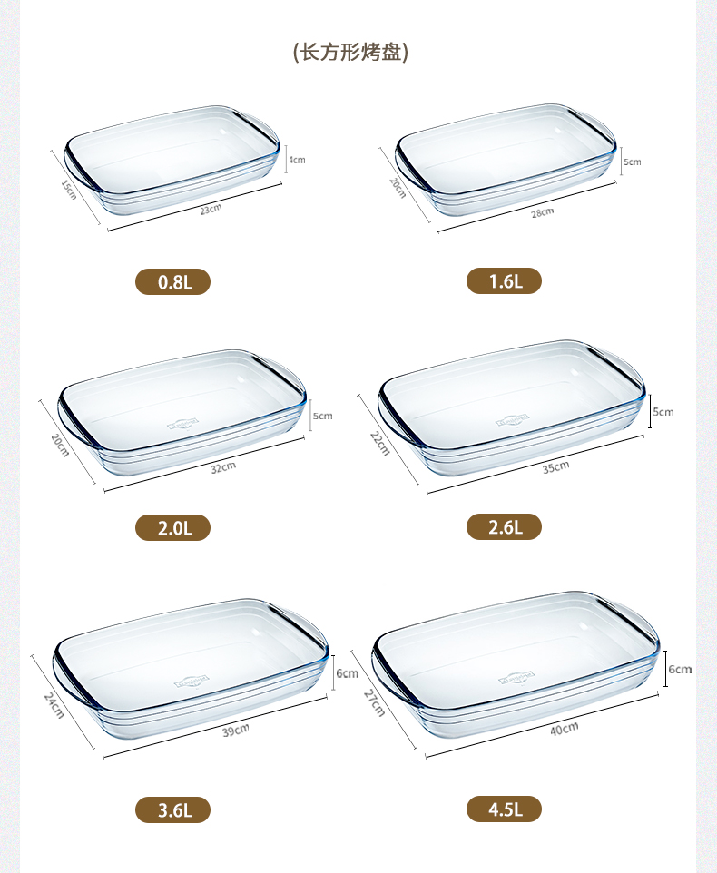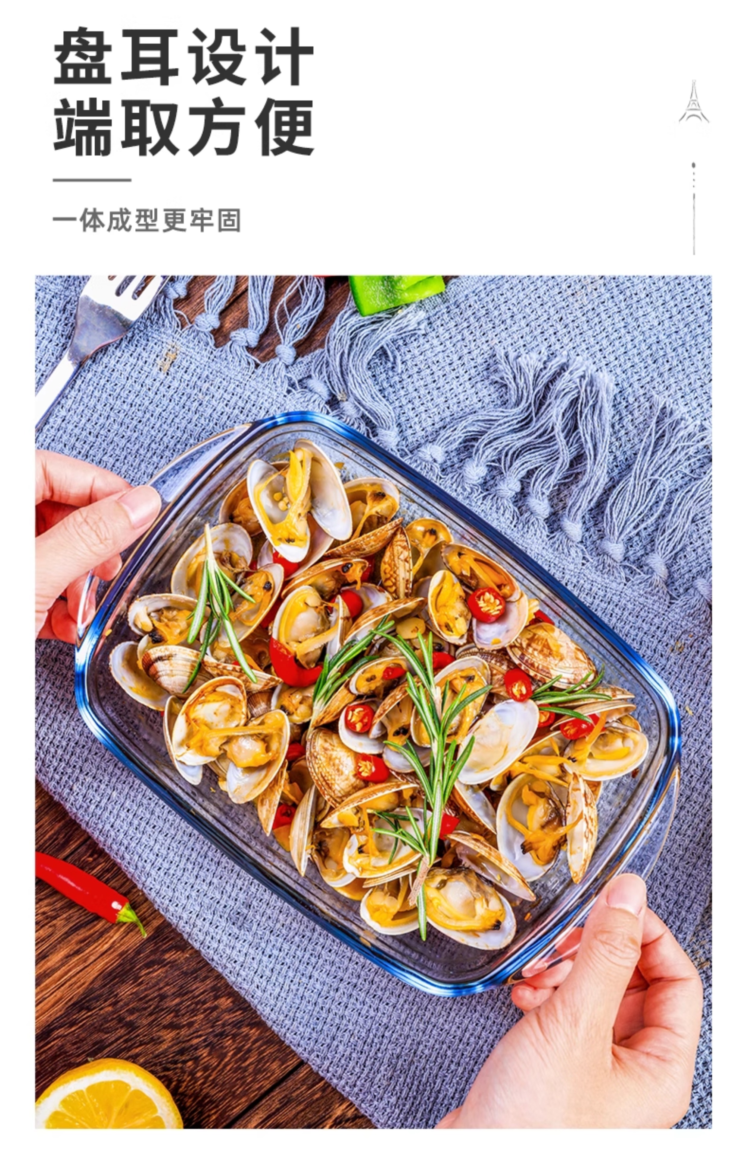 欧贵厨长方形玻璃烤盘烤箱微波炉适用35CM2.6L