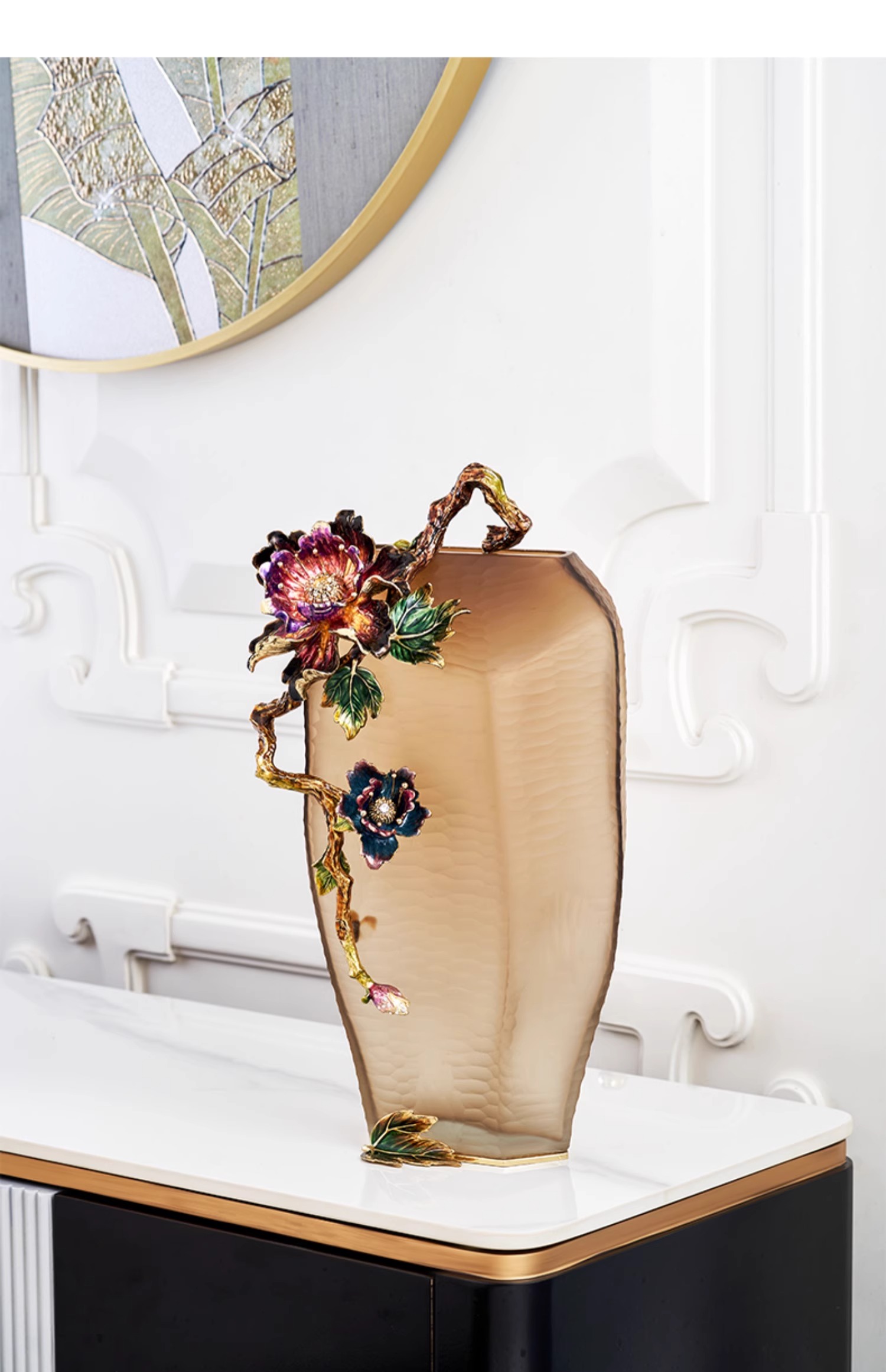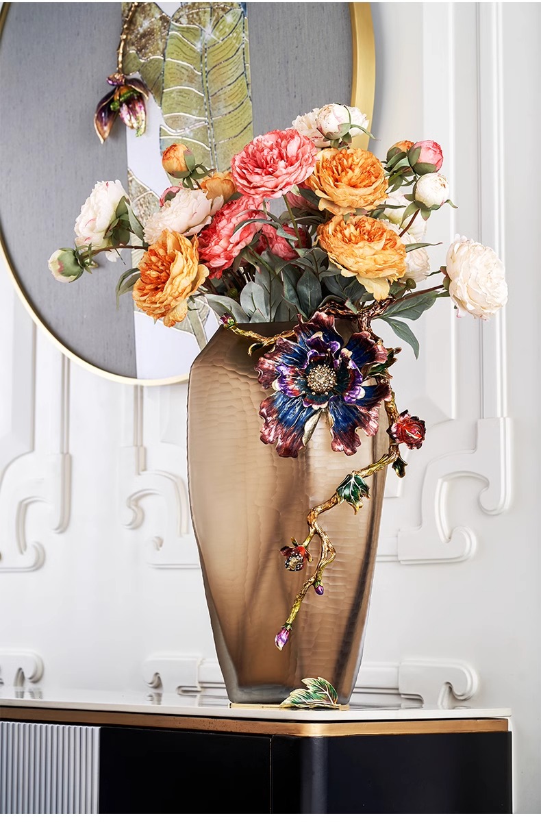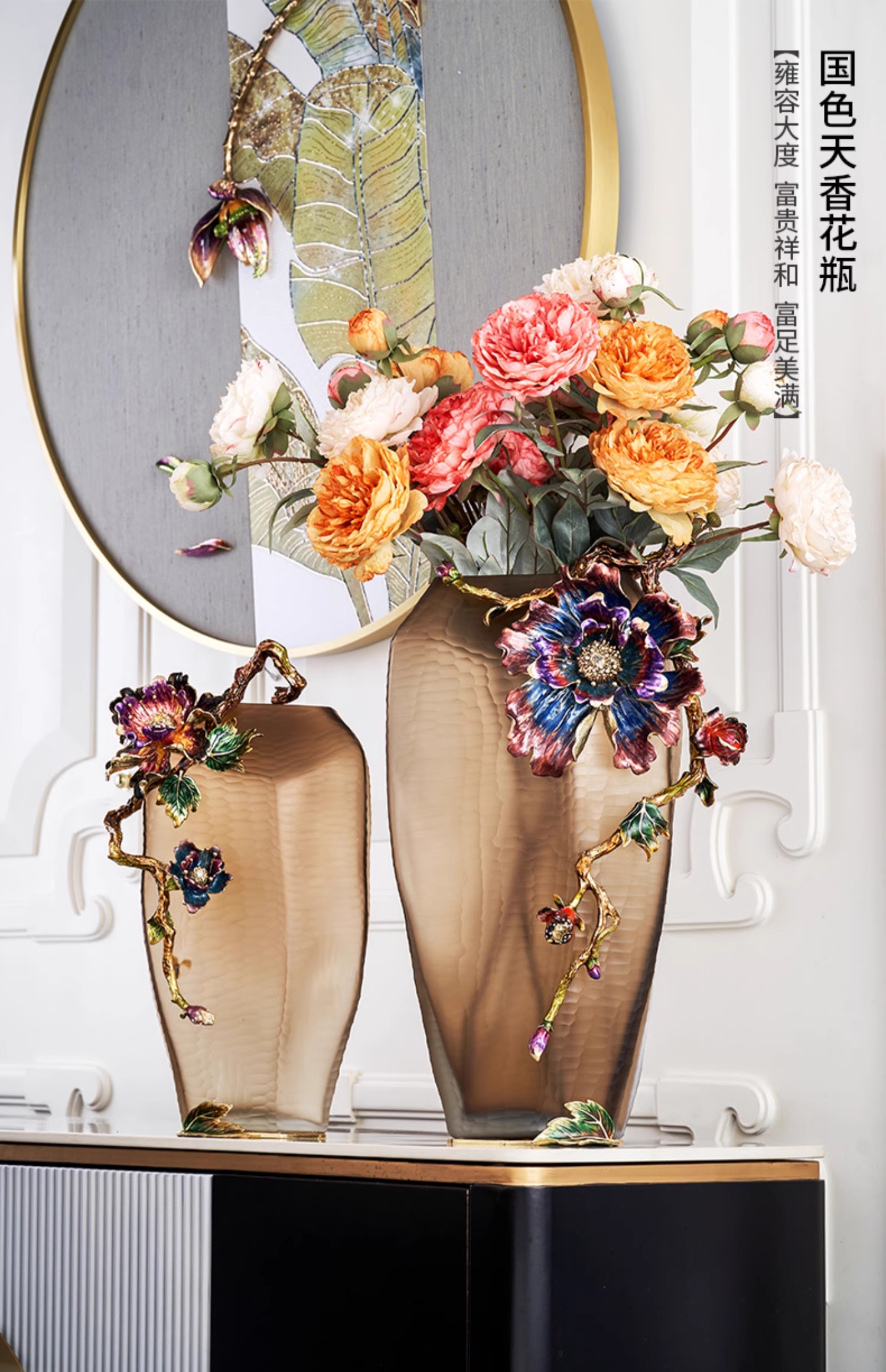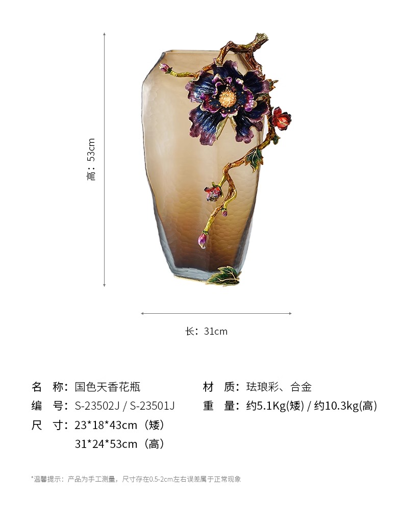 珐琅彩工艺国色天香花瓶豪宅别墅客厅玄关摆件家居饰品罗比罗丹国色天色花瓶【不支持补差,非质量问题不退不换】S