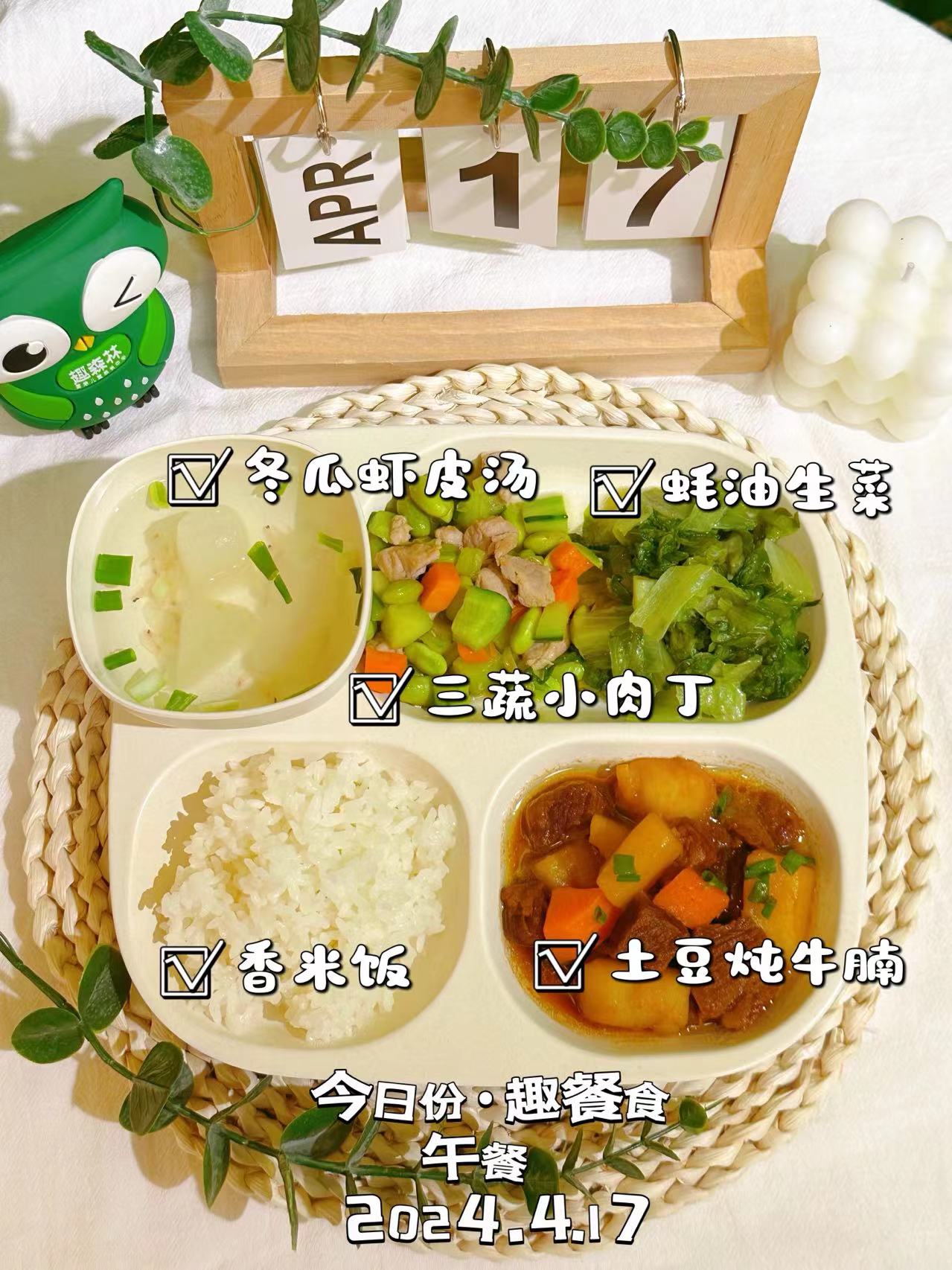 园区设有独立厨房,每天的午餐和点心都是营养师根据季节来搭配的儿童营养餐,符合宝宝的健康需求;每日三次以上幼儿常规体温检测等等细微照料。