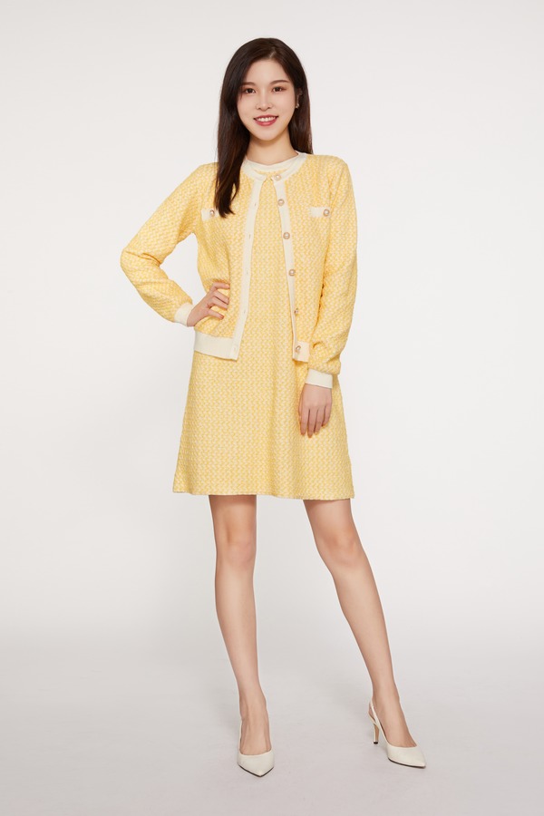 Le Malene 香奈儿风黄色连衣裙套装 9755