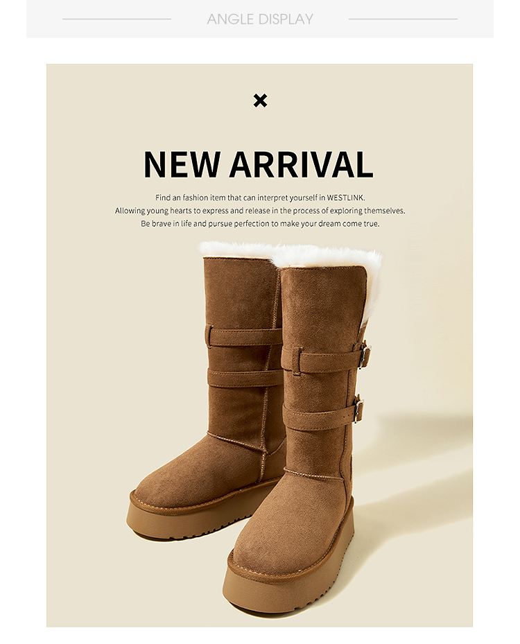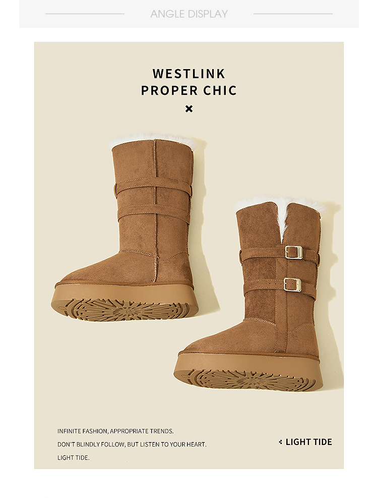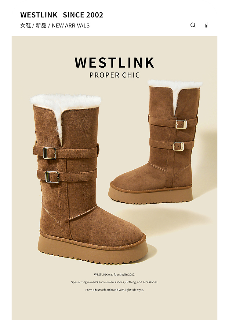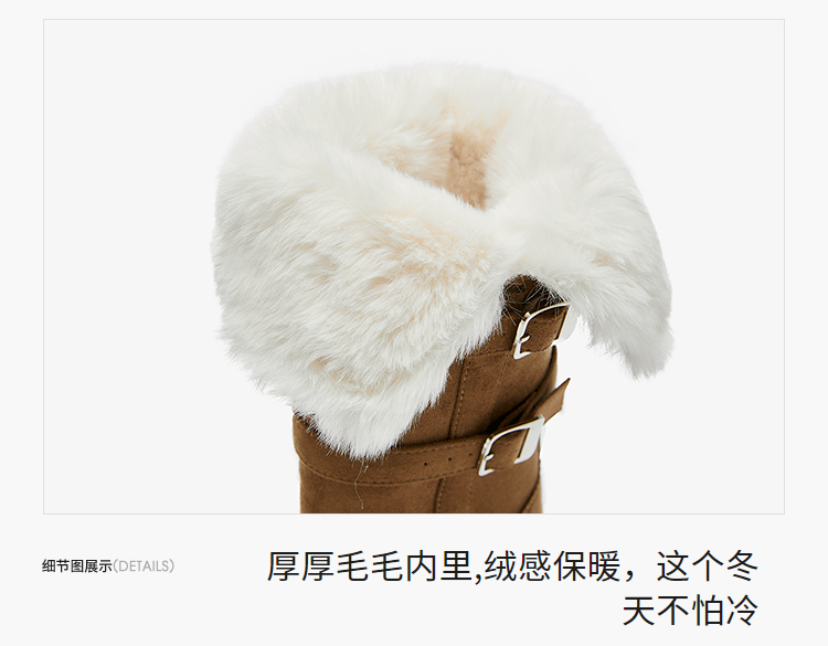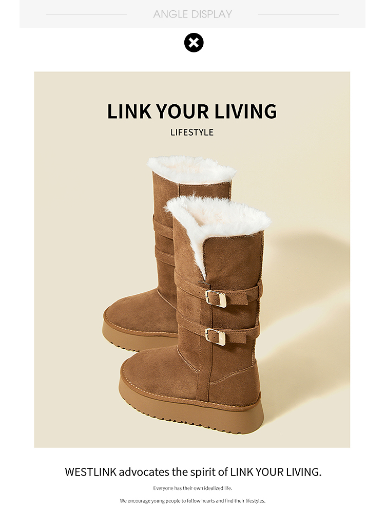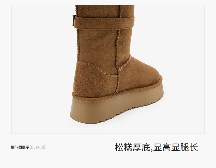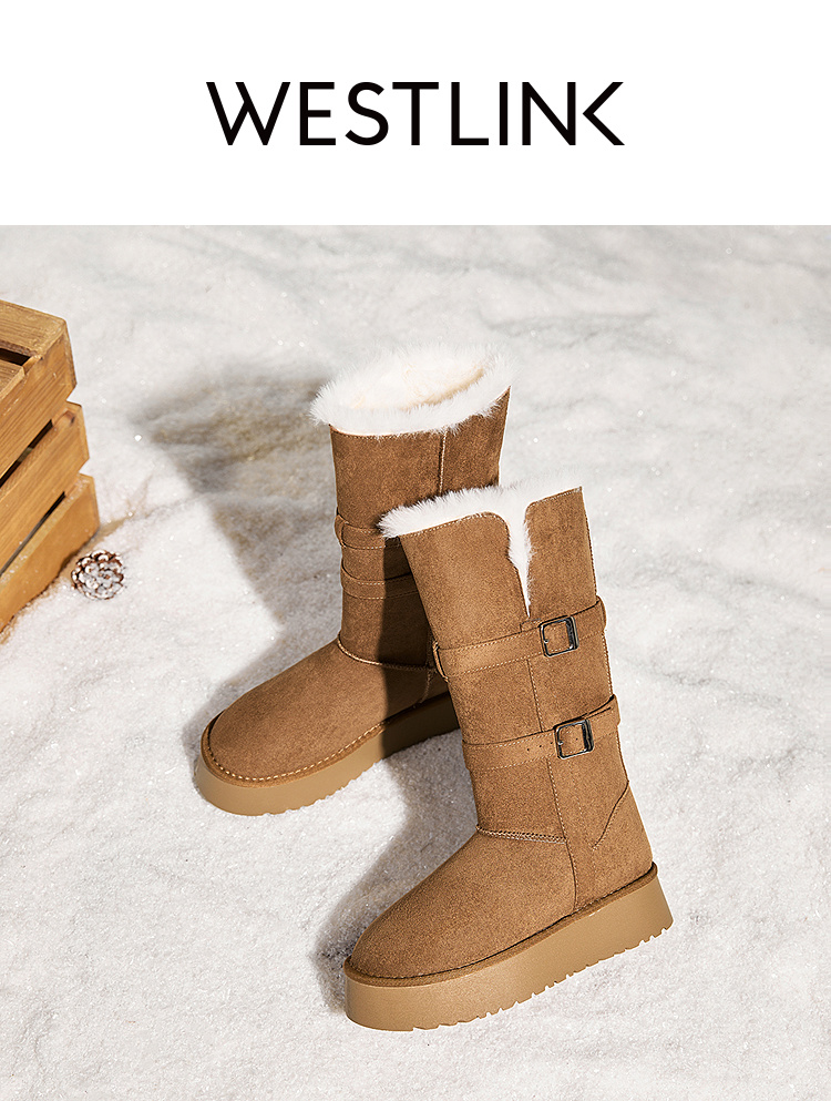 西遇厚底高筒雪地靴女新款冬季翻筒两穿加厚保暖棉靴加绒长靴K2457342