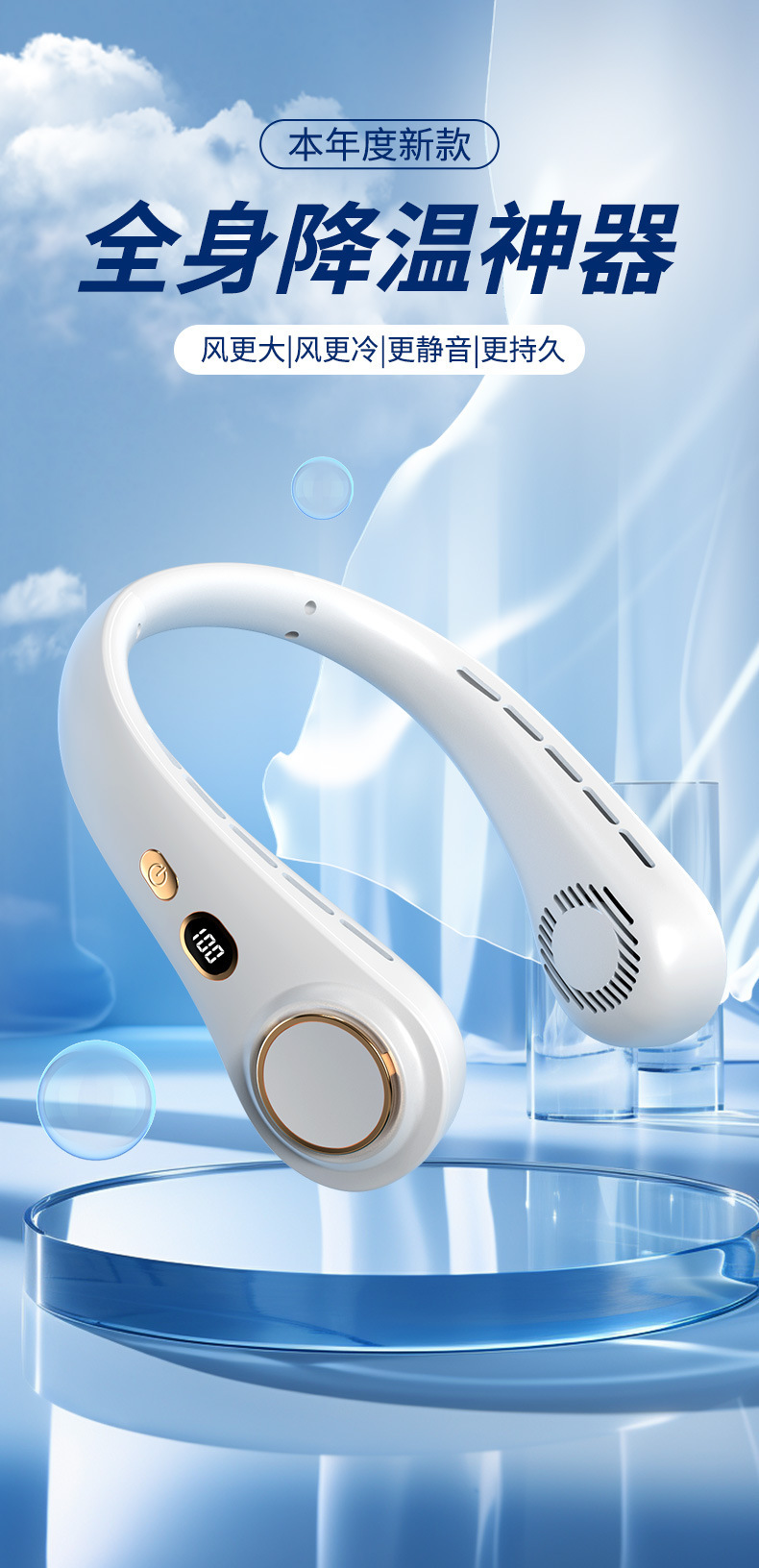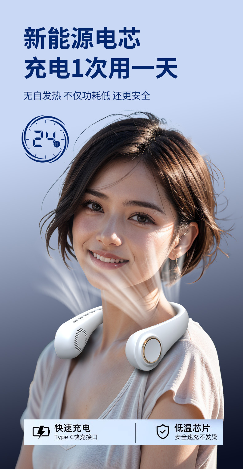 【新款!超长续航】 挂脖无叶风扇 】 USB充电 办公室懒人随身静音 便携式迷你风扇