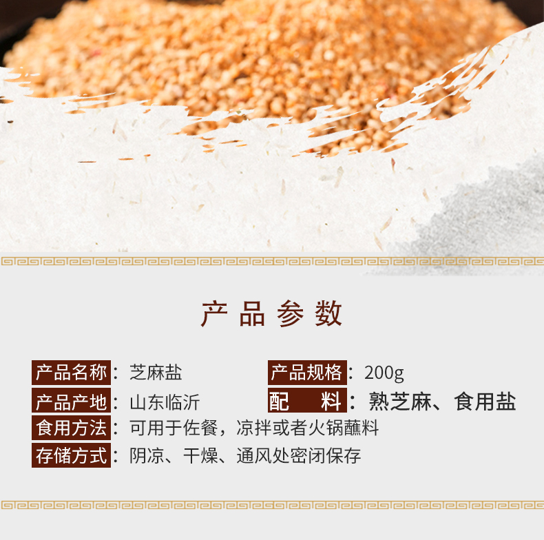 【3瓶装】沂蒙山特产石磨芝麻盐 拌面、办法、烧烤调味200g/瓶