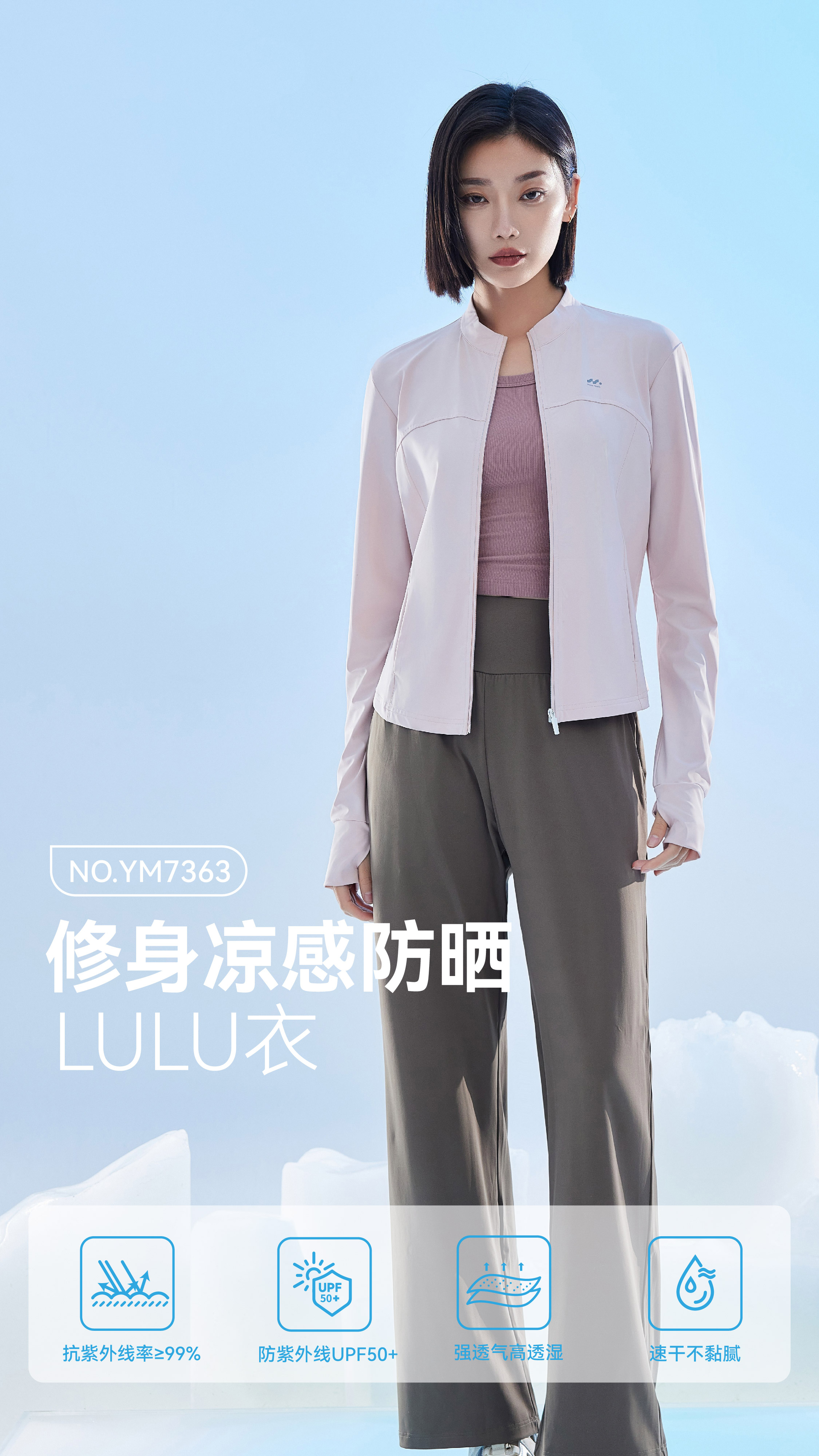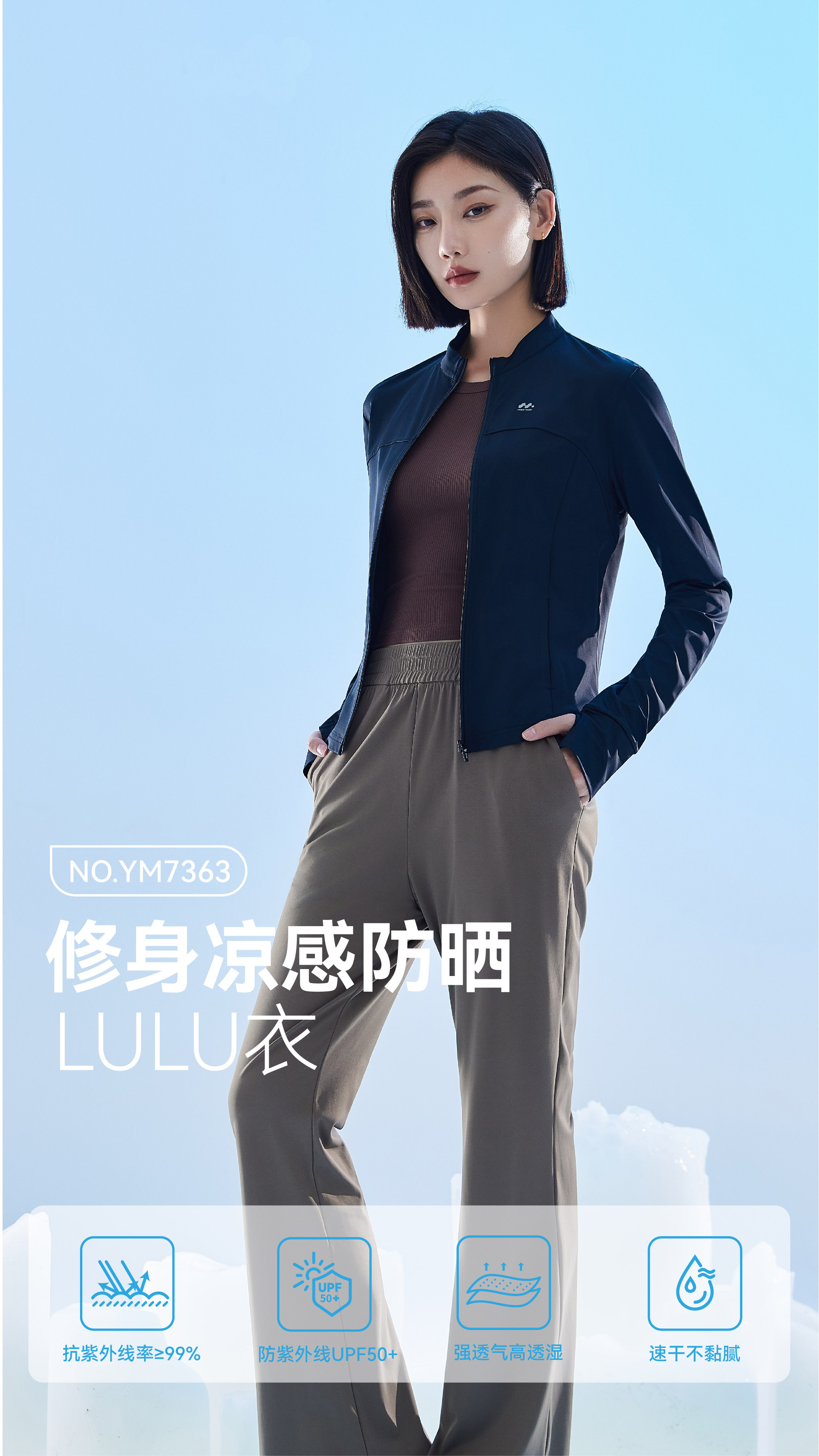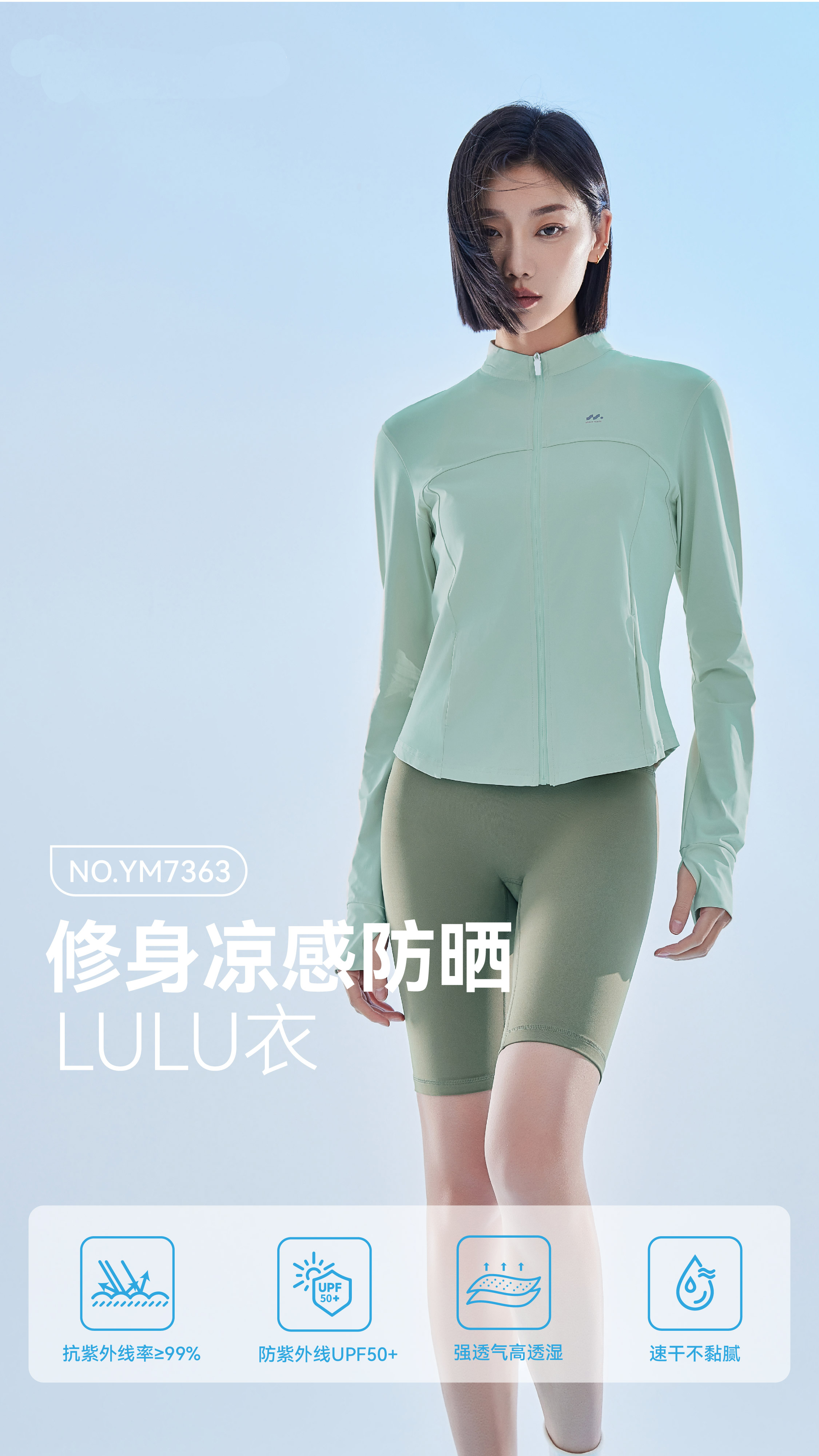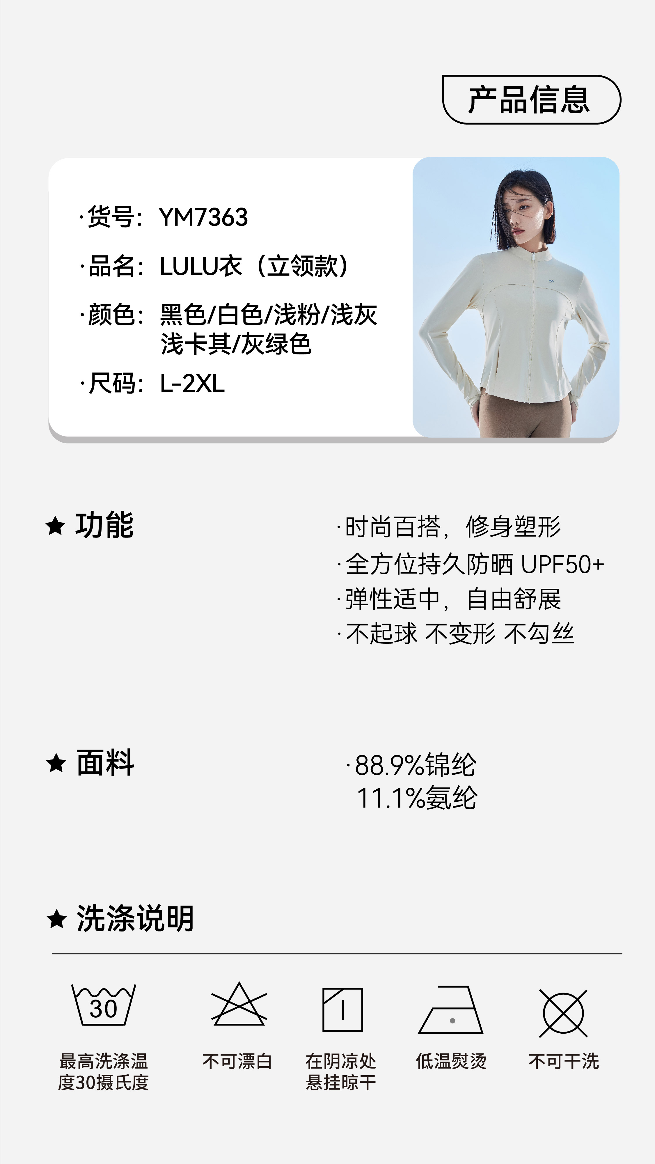 【防晒】夏季防晒衣LULU衣立领修身塑形防晒黑防晒黑【YM7363】