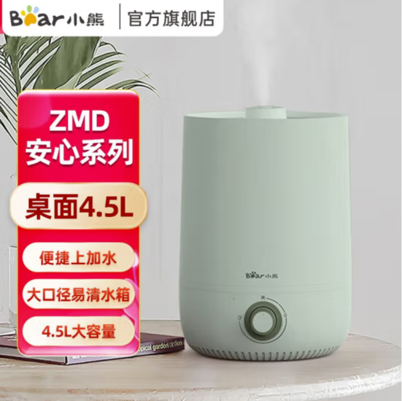 小熊(Bear) 加湿器4.5L 桌面香薰机便捷上加水设计 JSQ-C45S9【ZMD安心系列】 淘气