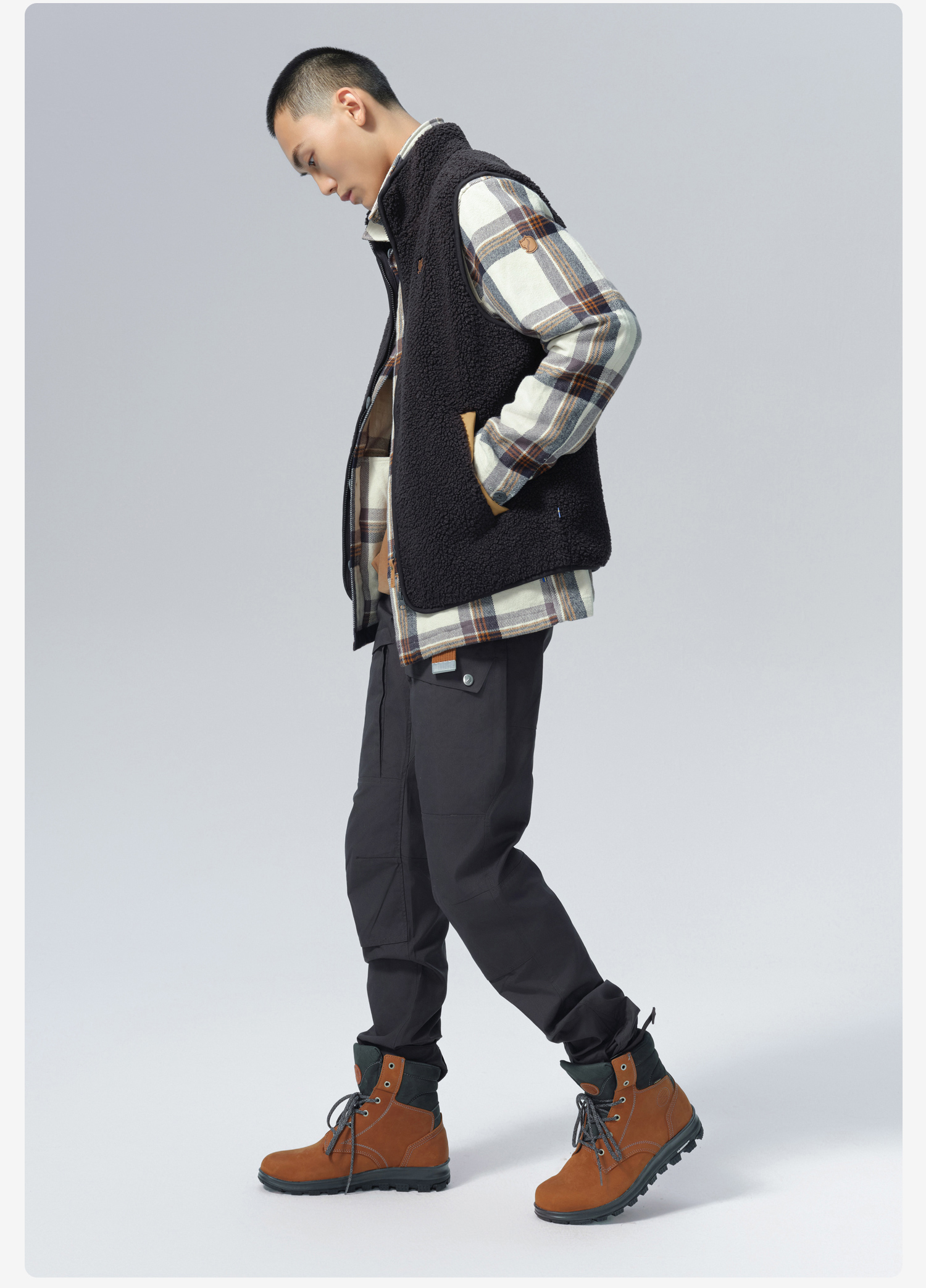 北极狐 男士抓绒马甲 2024秋冬新款 立领保暖羊羔绒外套07242159