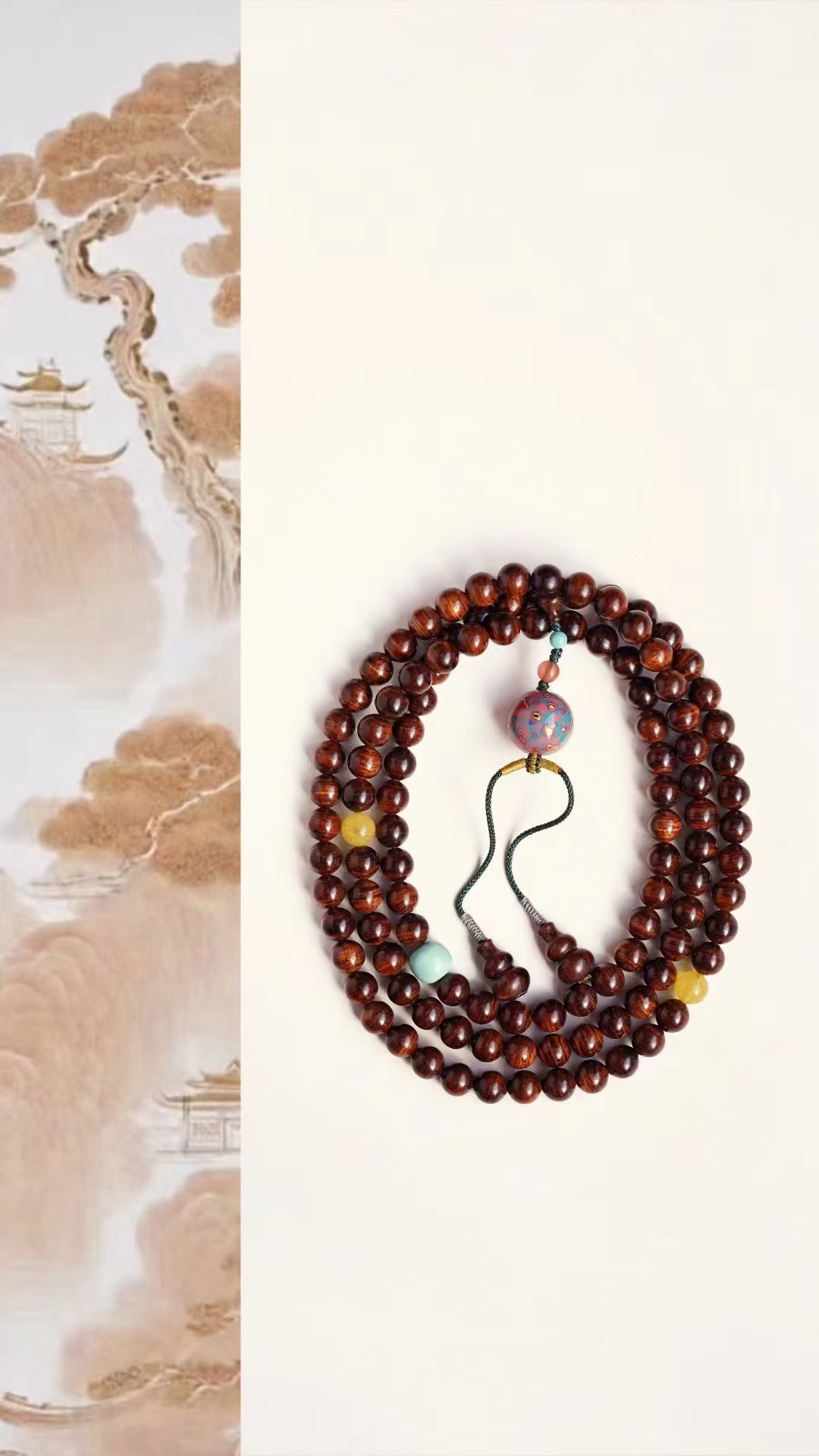 配饰:大漆珠、蜜蜡、松石、南红
