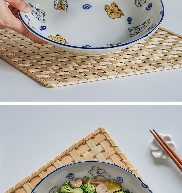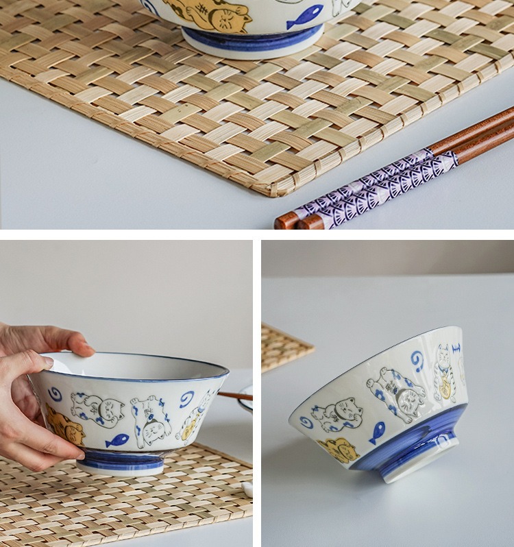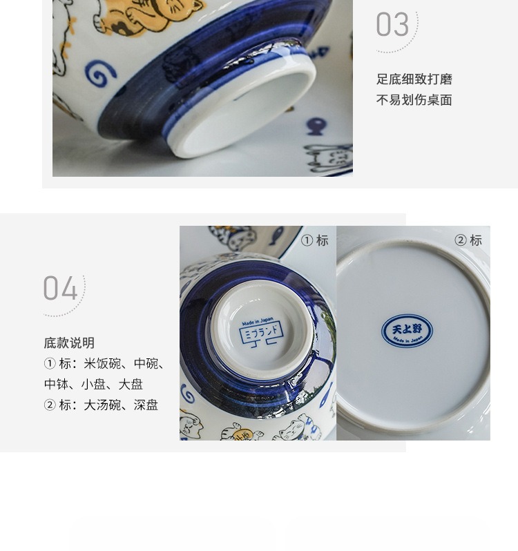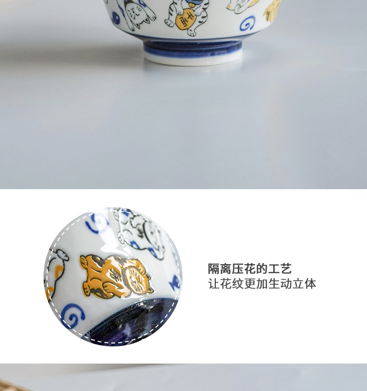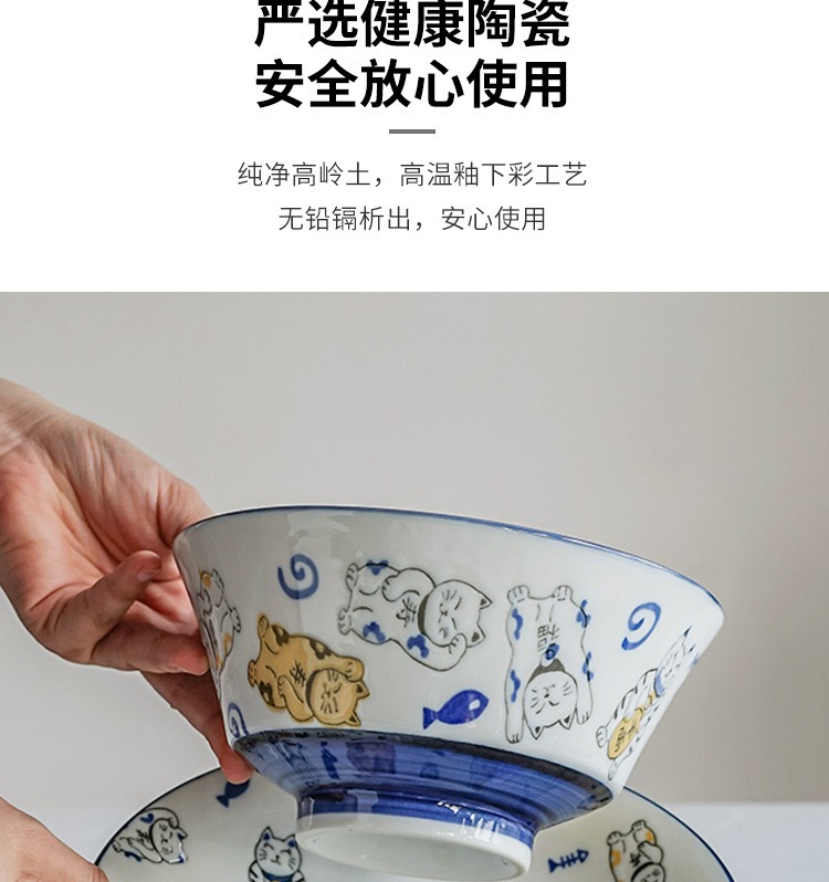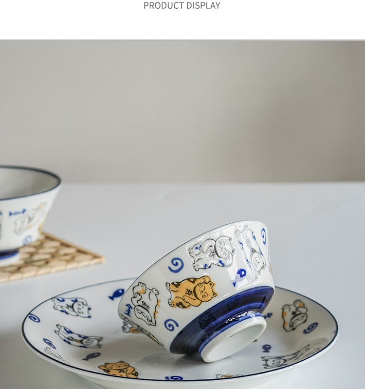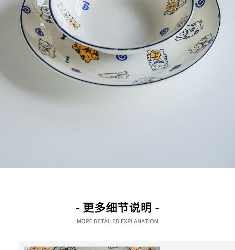 日本进口碗盘套装日式清新可爱手绘招财猫米饭碗汤碗小碟菜盘大盘美浓烧幸运猫散件