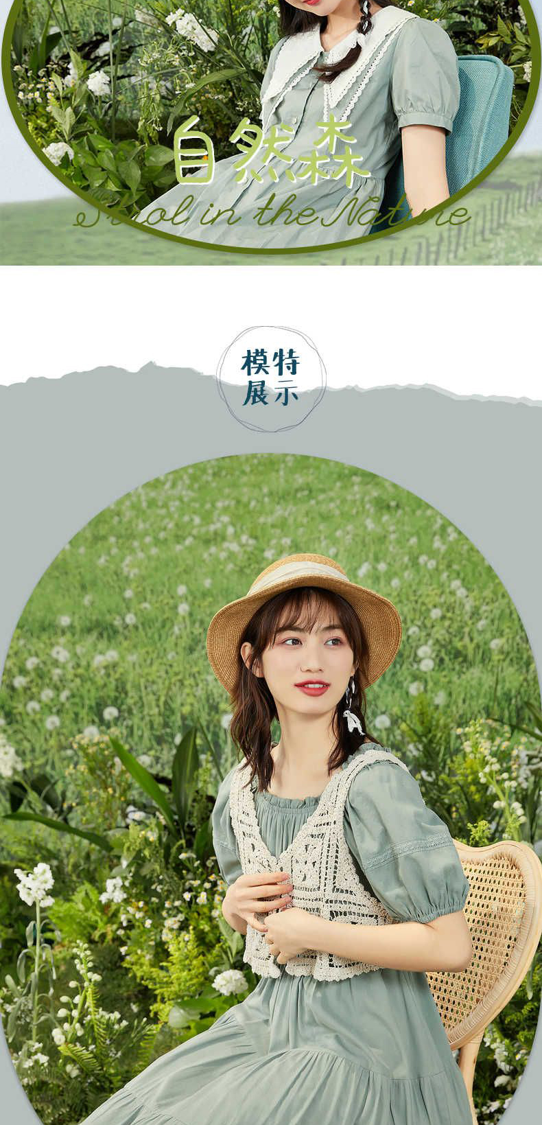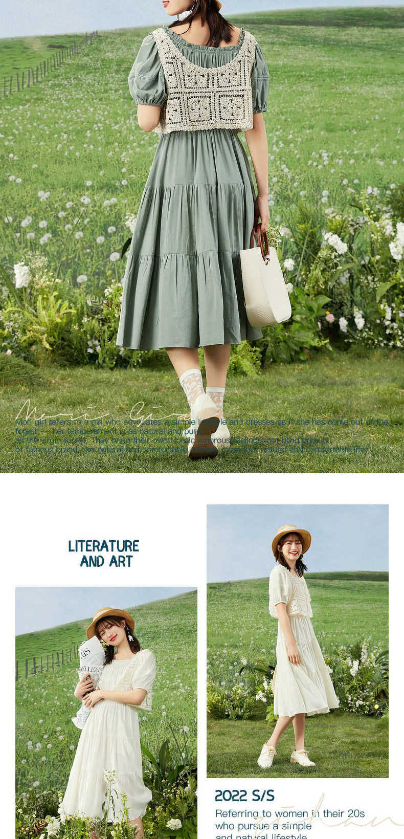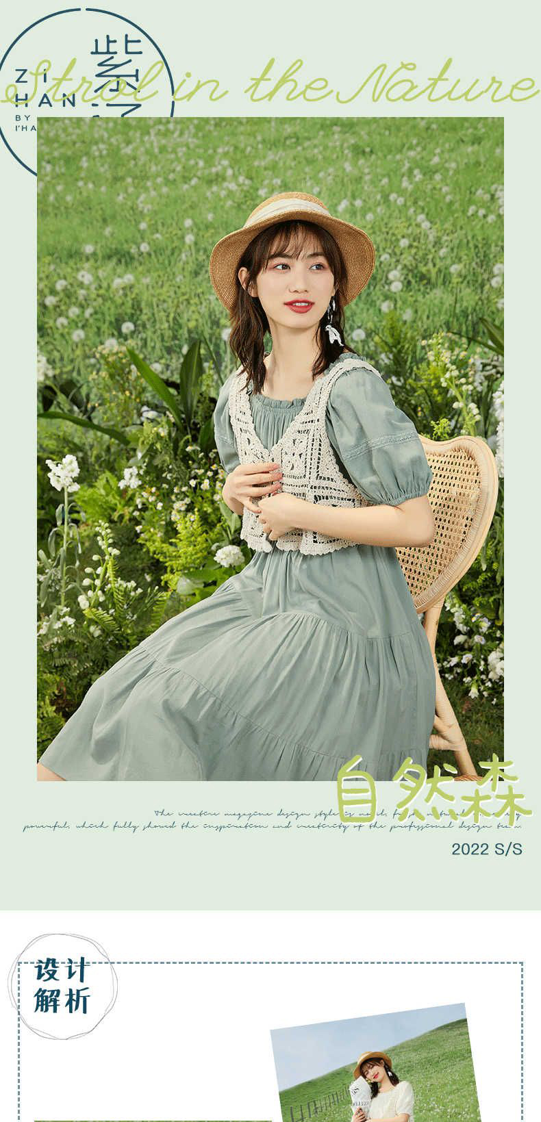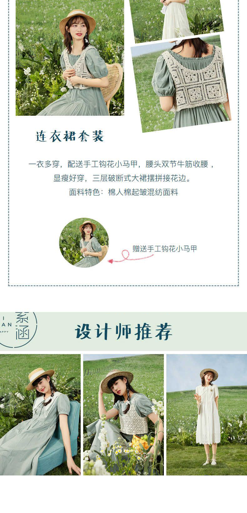 ZIHAN紫涵森系连衣裙套装夏季新款2022拼接花边裙子勾花马甲两件套散摆04ZS545