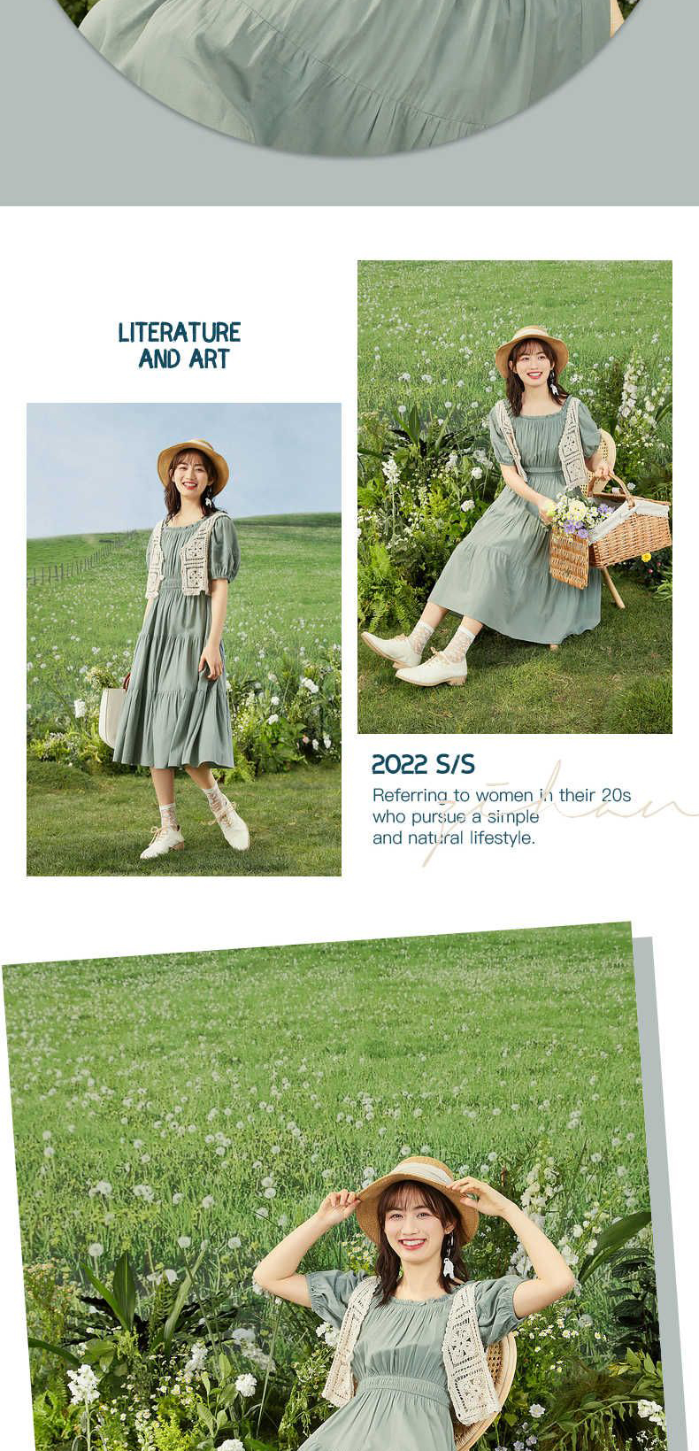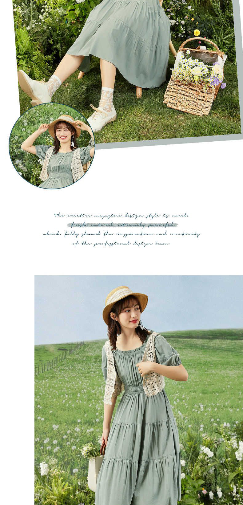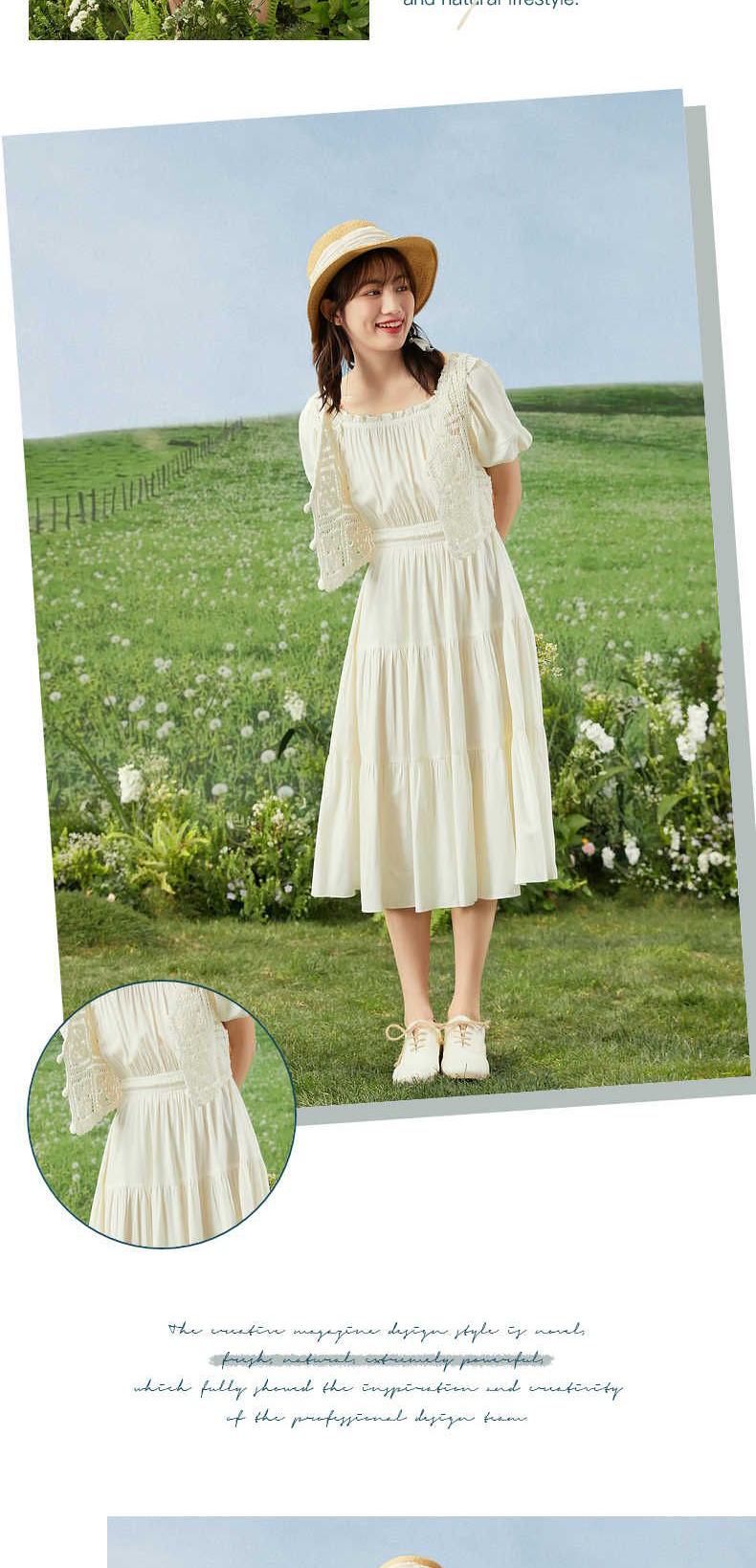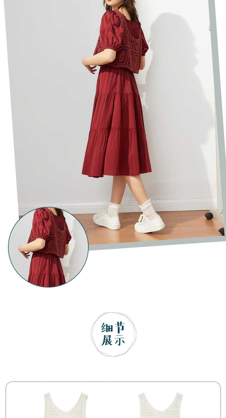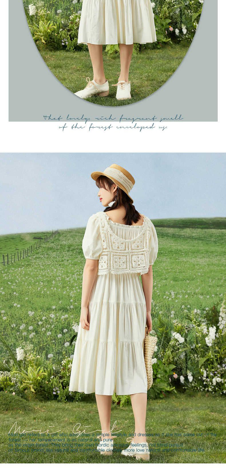ZIHAN紫涵森系连衣裙套装夏季新款2022拼接花边裙子勾花马甲两件套散摆04ZS545