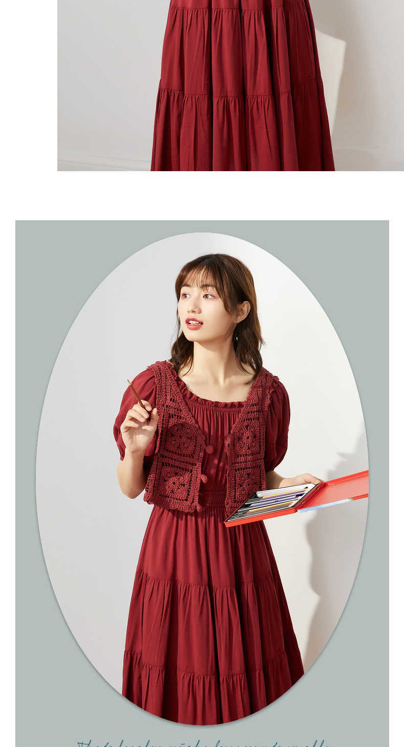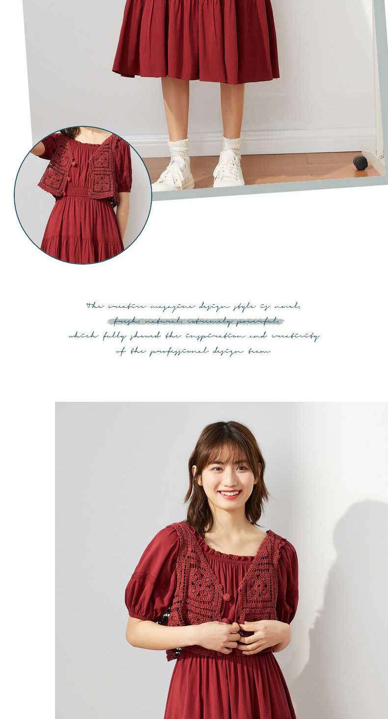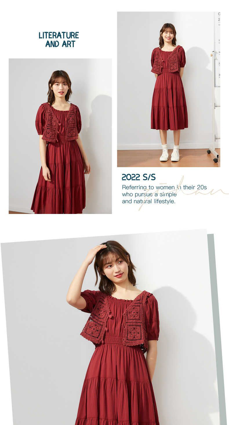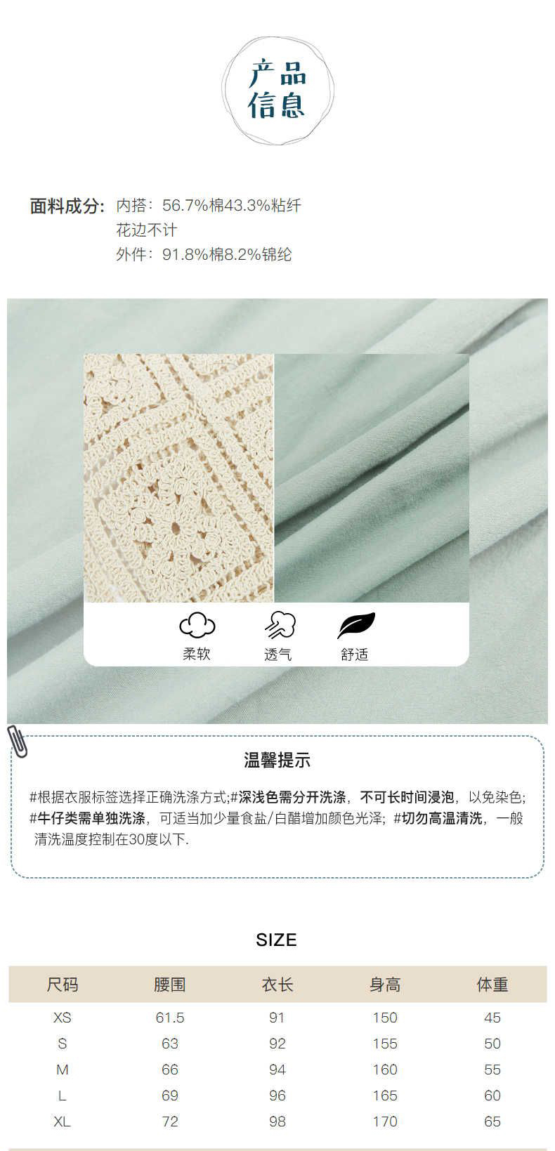 ZIHAN紫涵森系连衣裙套装夏季新款2022拼接花边裙子勾花马甲两件套散摆04ZS545
