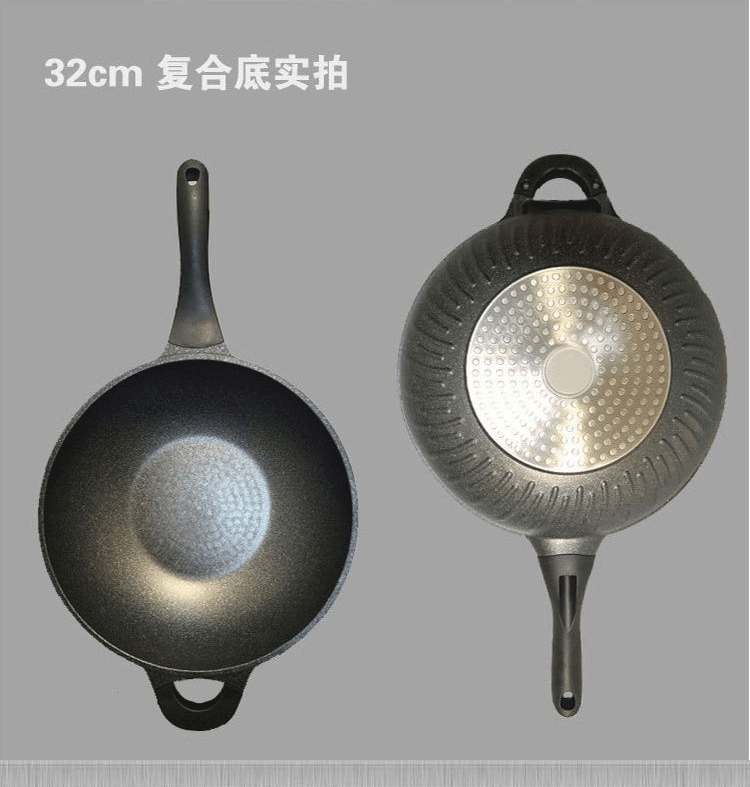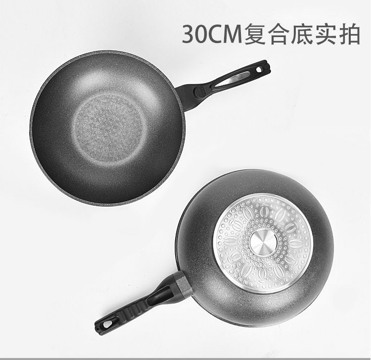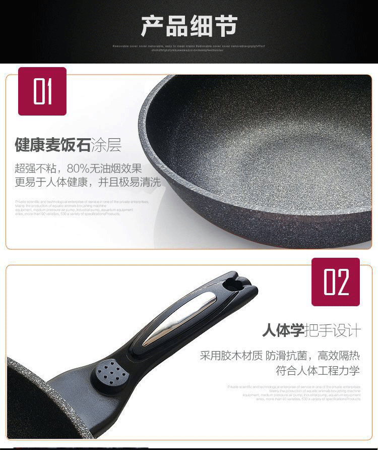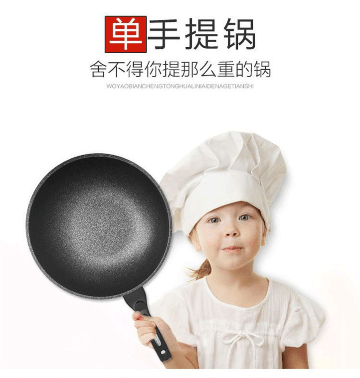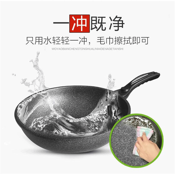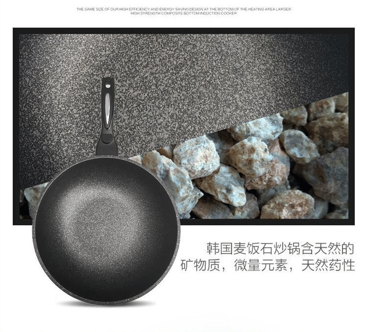麦饭石不粘锅家用炒菜锅具平底煎锅无油烟韩国电磁炉燃气不沾炒锅