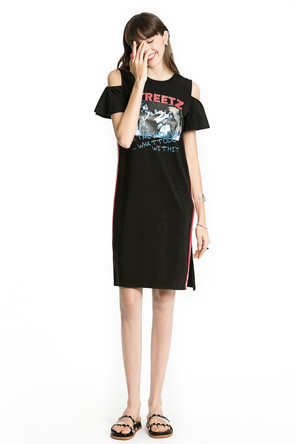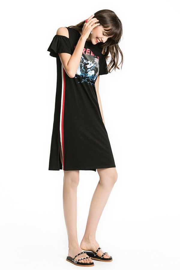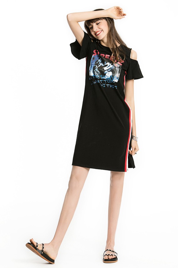 EMC亿美丞 运动感印花露肩连衣裙 1107