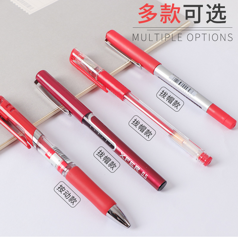 「12支装!送20支笔芯」得力红笔学生老师用批改作业红色中性笔按动0.5水笔签字笔