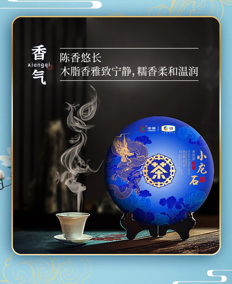 中茶牌普洱茶 2021年小龙石普洱熟茶饼 云南七子饼茶357克 单饼装