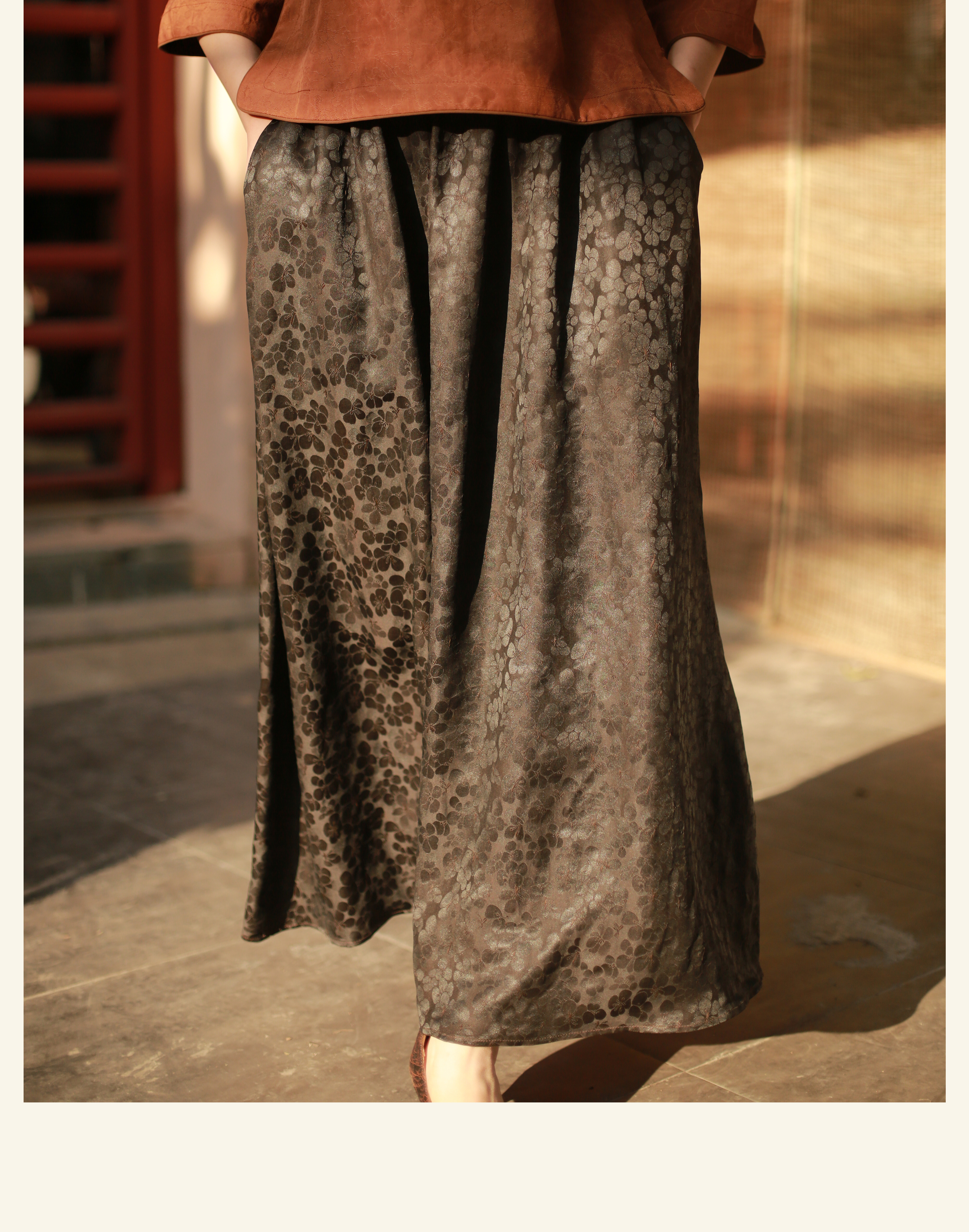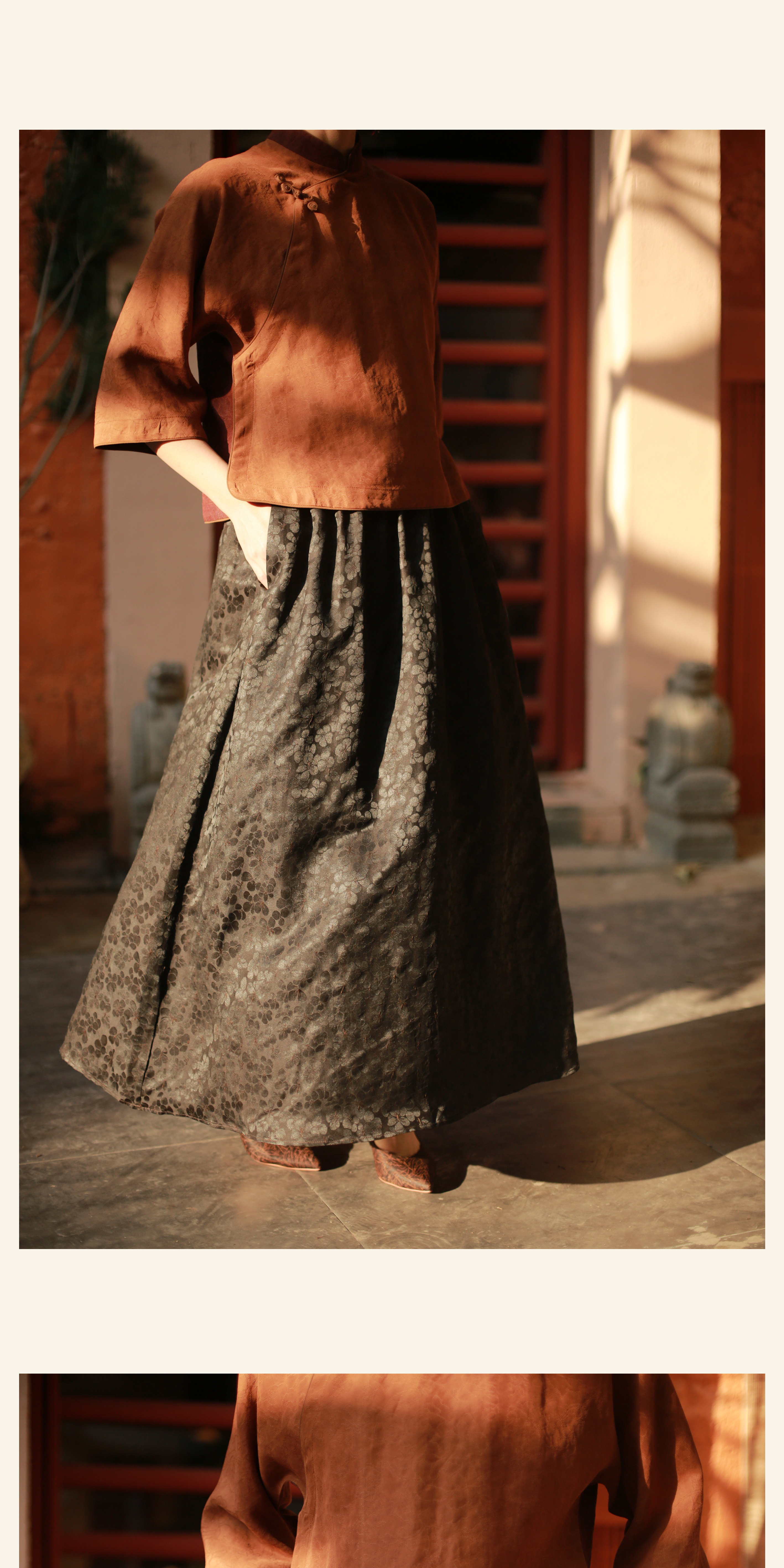 漫物记素平缎香云纱拼布连帽外套M286