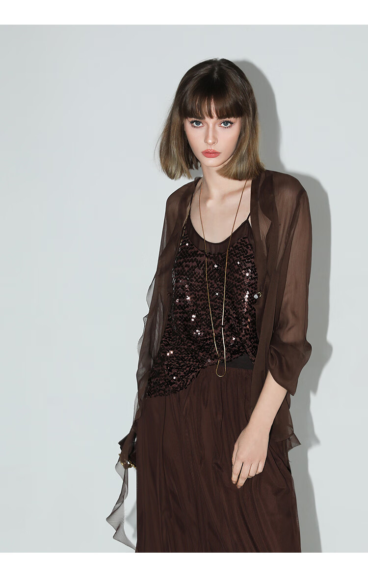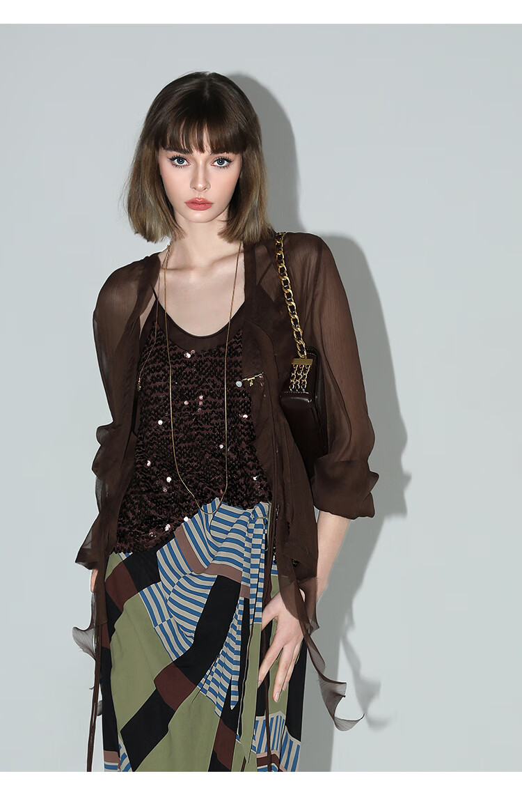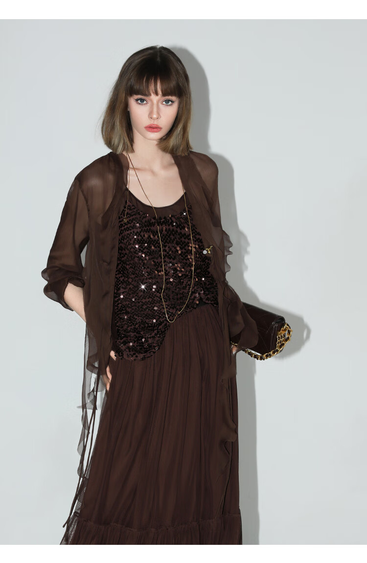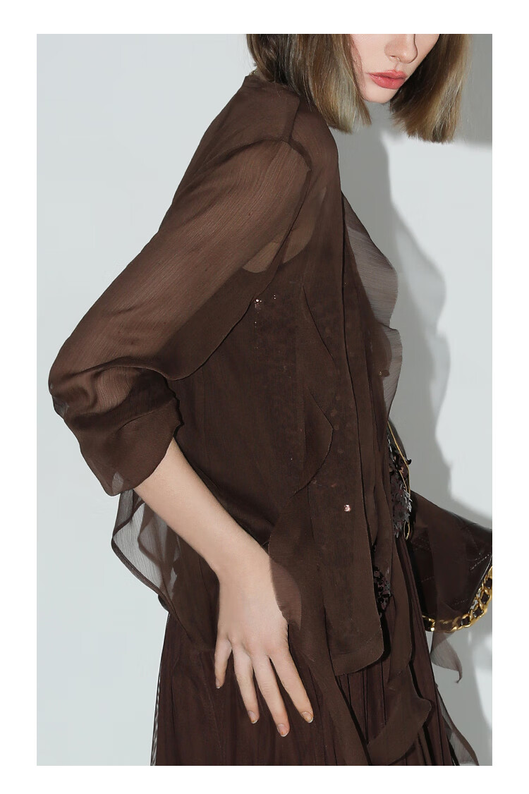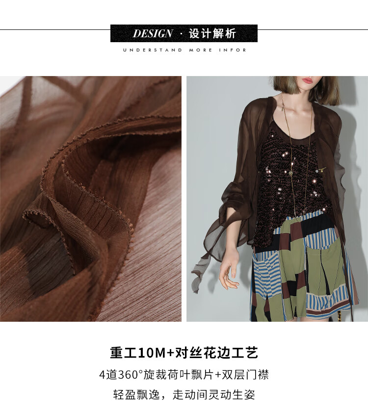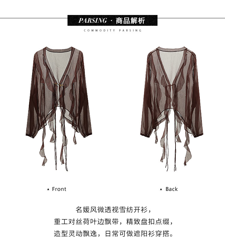 COCOBELLA名媛风10M对丝灵动荷叶边飘带雪纺衫遮阳开衫LC0002G