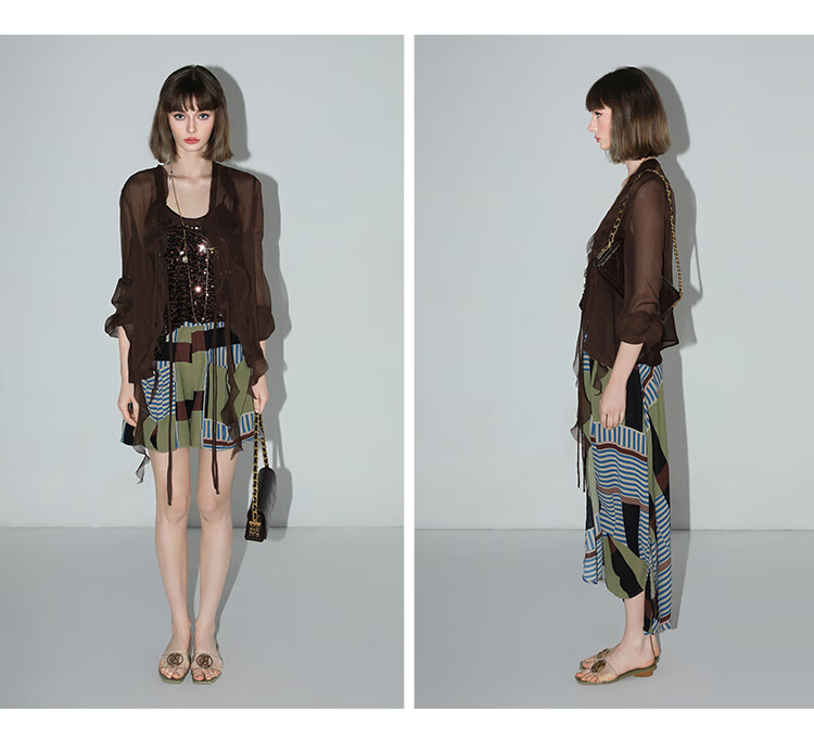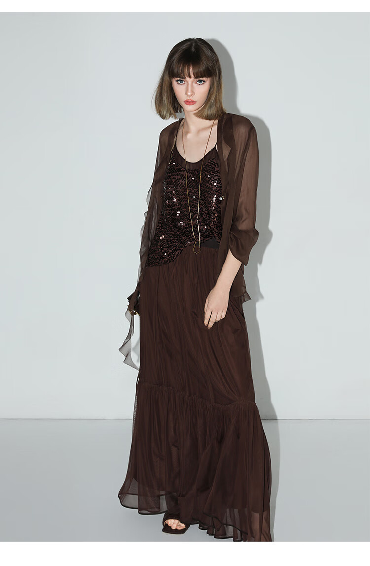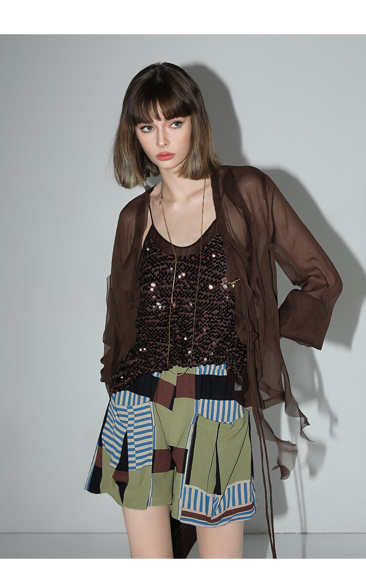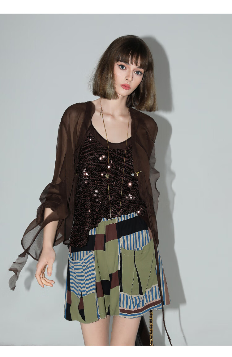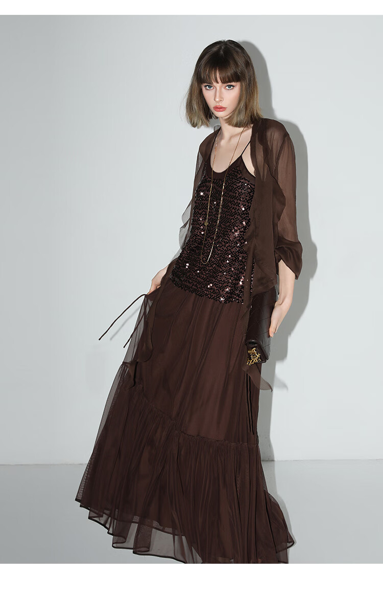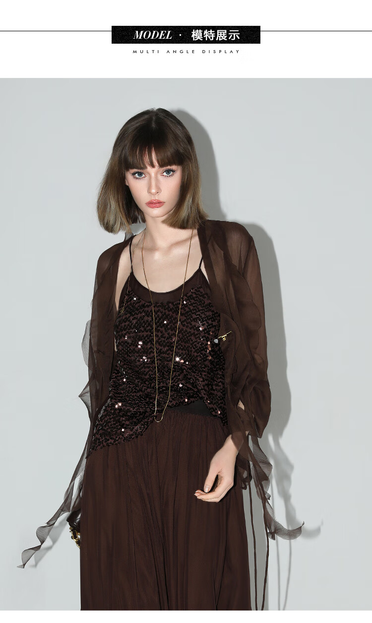 COCOBELLA名媛风10M对丝灵动荷叶边飘带雪纺衫遮阳开衫LC0002G
