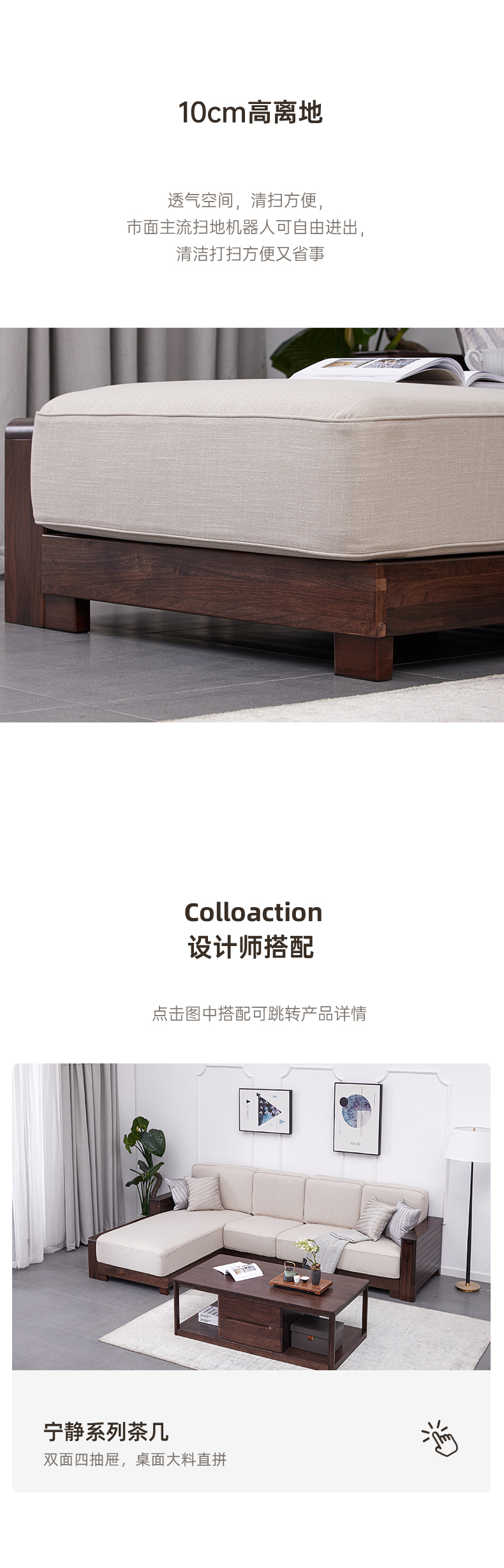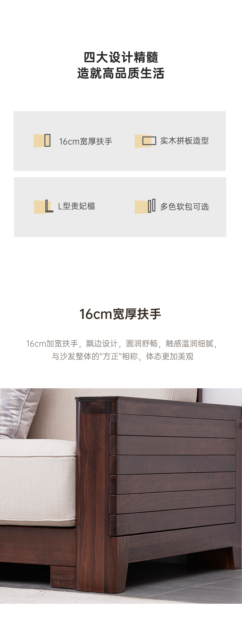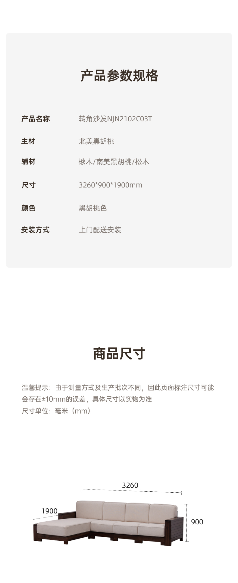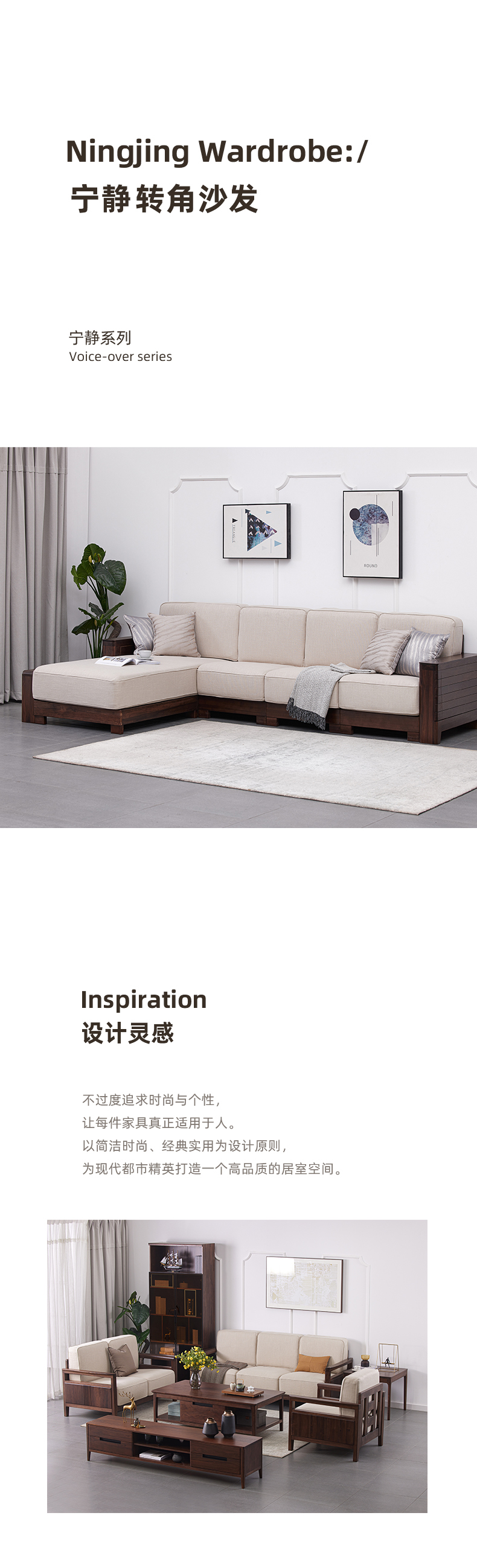 【现代实木风-NJT2102转角沙发】现代实木/现代简约/客厅/北美黑胡桃/实木转角沙发