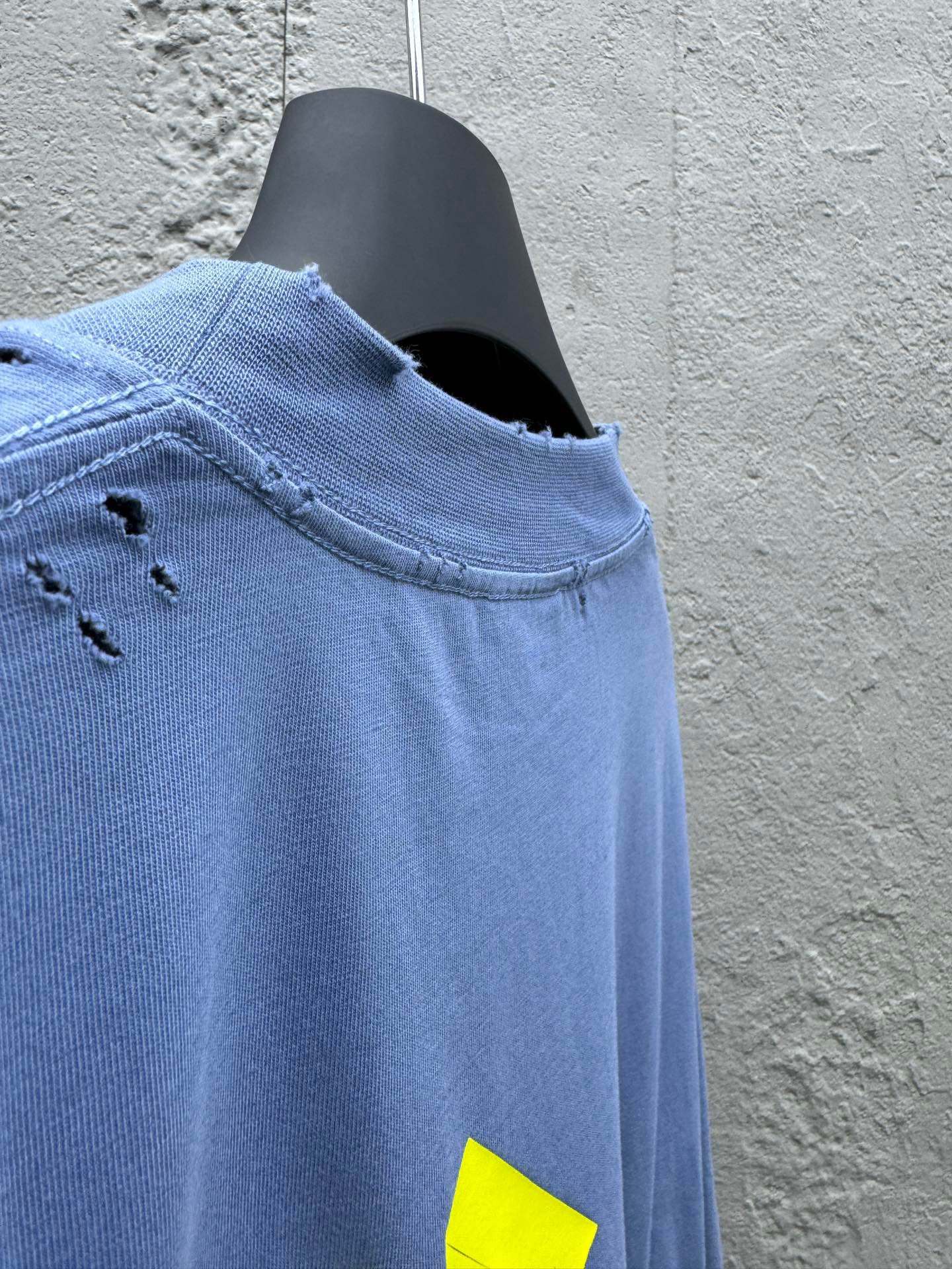 工艺说明: 袖子以及下摆采用磨烂效果 内里处理干净 无线头 无余边 肩部采用磨烂设计 车线平直 三针五线工艺 肩膀处内里带压条 面料采用做旧洗水磨毛工艺 领口部位磨烂破洞设计 罗纹面料定织定染色 颜色一致无色差 胸前运用美纹纸胶带字母 整体重工艺的工序 水洗面料 舒适柔软 磨损洗旧效果 背后字母采用人工对位用烫版定型做胶浆印花工艺