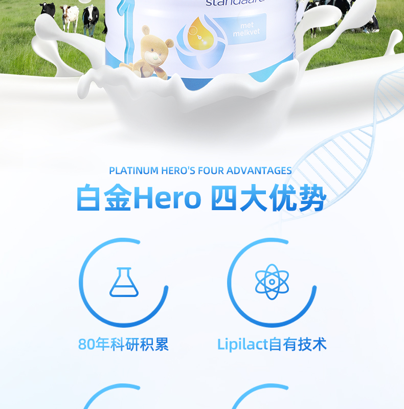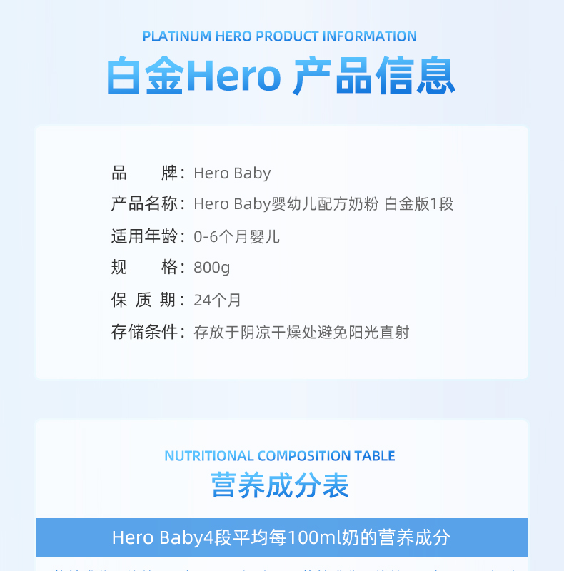 荷兰HeroBaby婴幼儿配方奶粉美素白金版1段800g【保税备货】