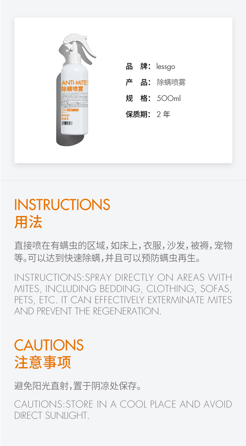 【清仓】lessgo除螨喷雾| 500ml/瓶