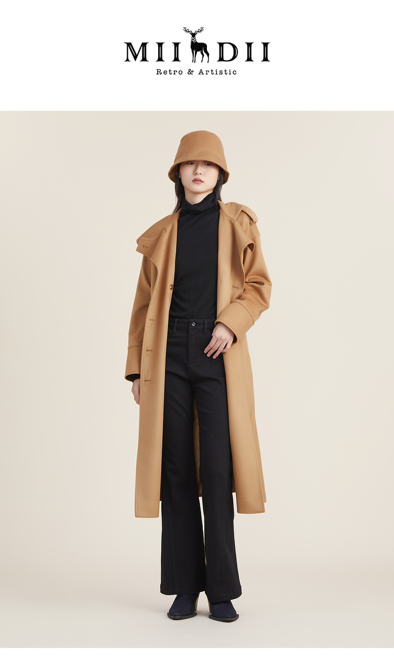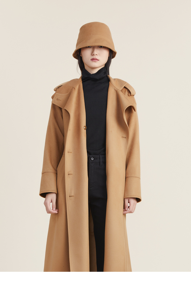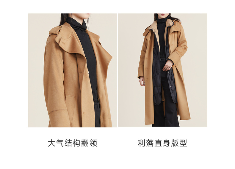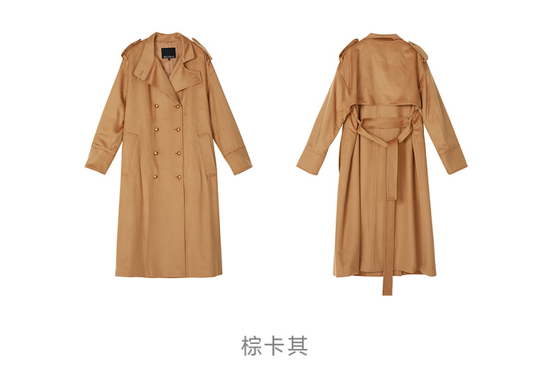【高端系列】谜底2022秋新款双排扣中长款毛呢大衣女223GD1025