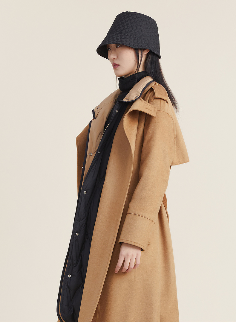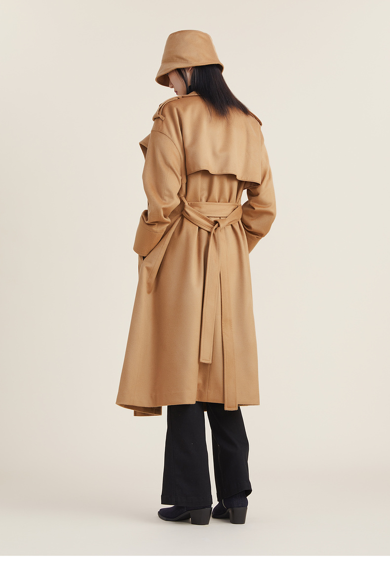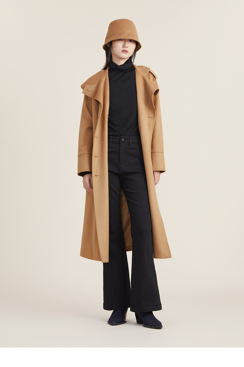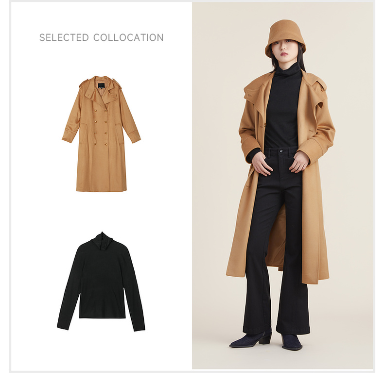 【高端系列】谜底2022秋新款双排扣中长款毛呢大衣女223GD1025