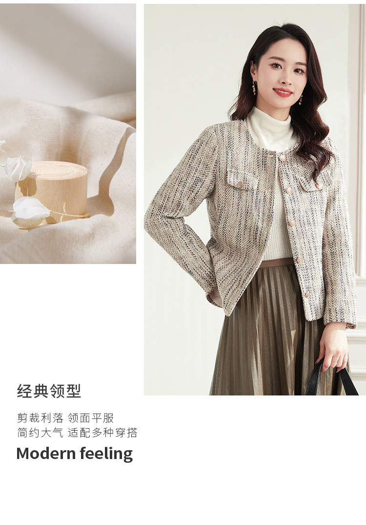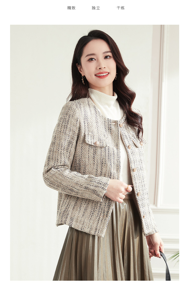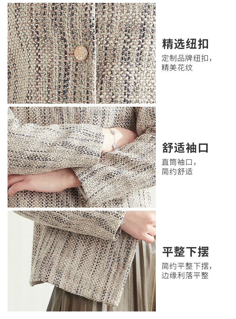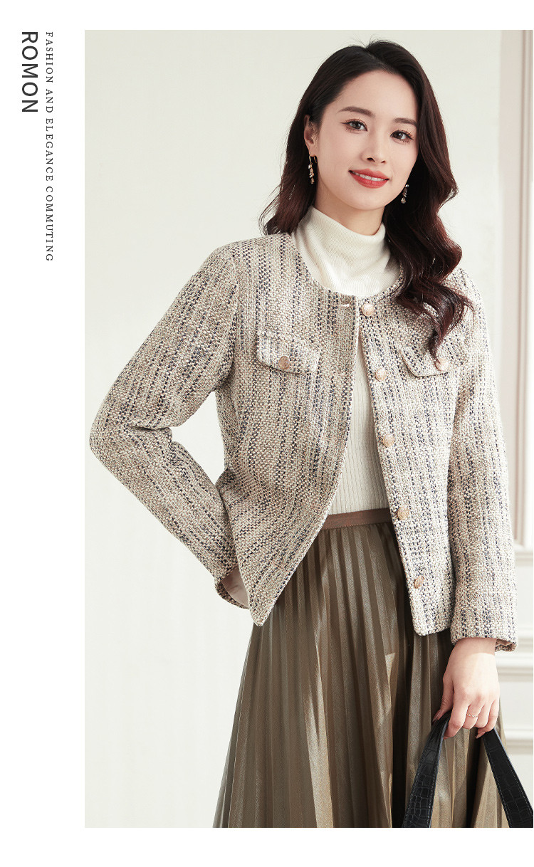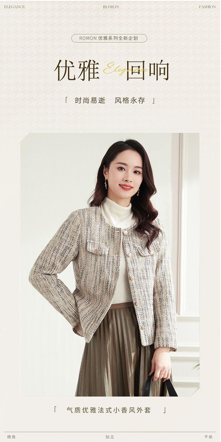 【小香风】罗蒙女士西服棉混纺优雅复古简约百搭时尚有型格子外套女