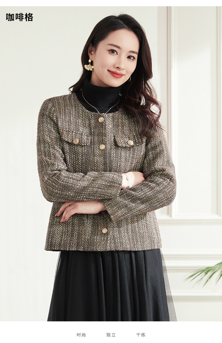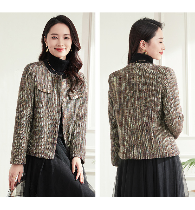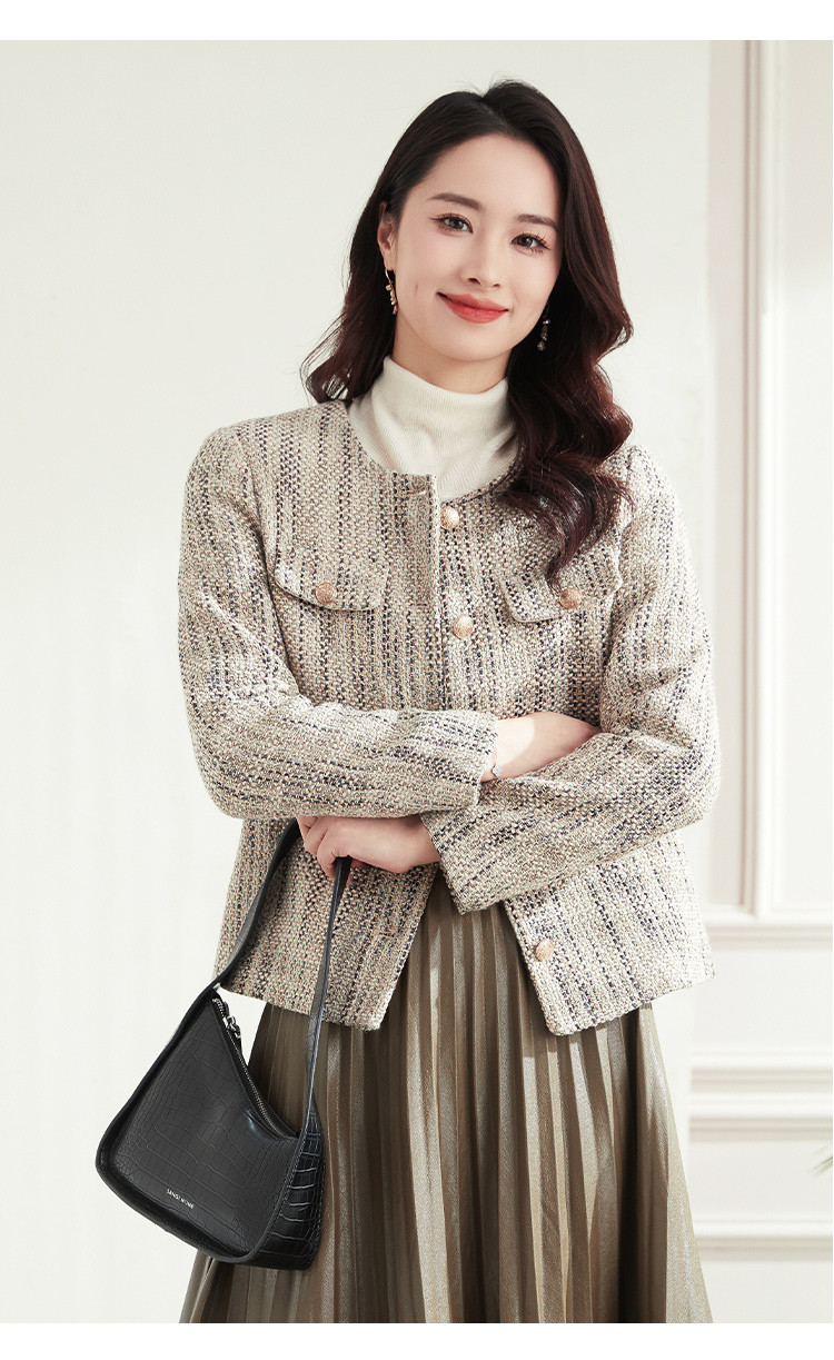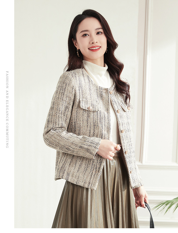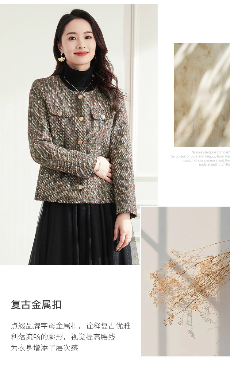 【小香风】罗蒙女士西服棉混纺优雅复古简约百搭时尚有型格子外套女
