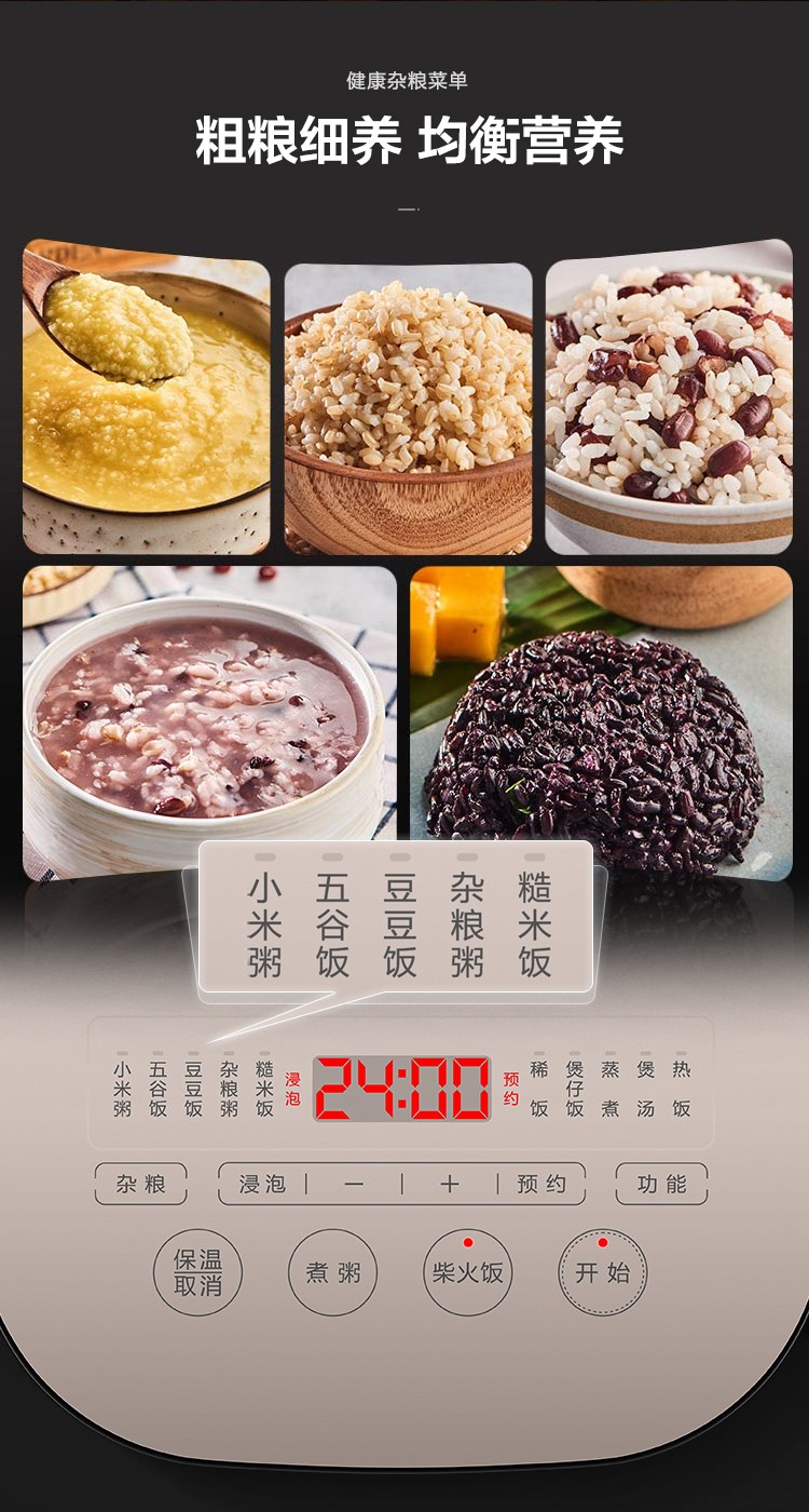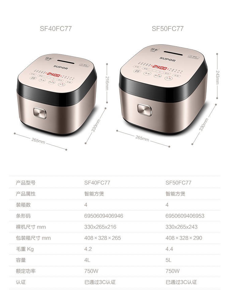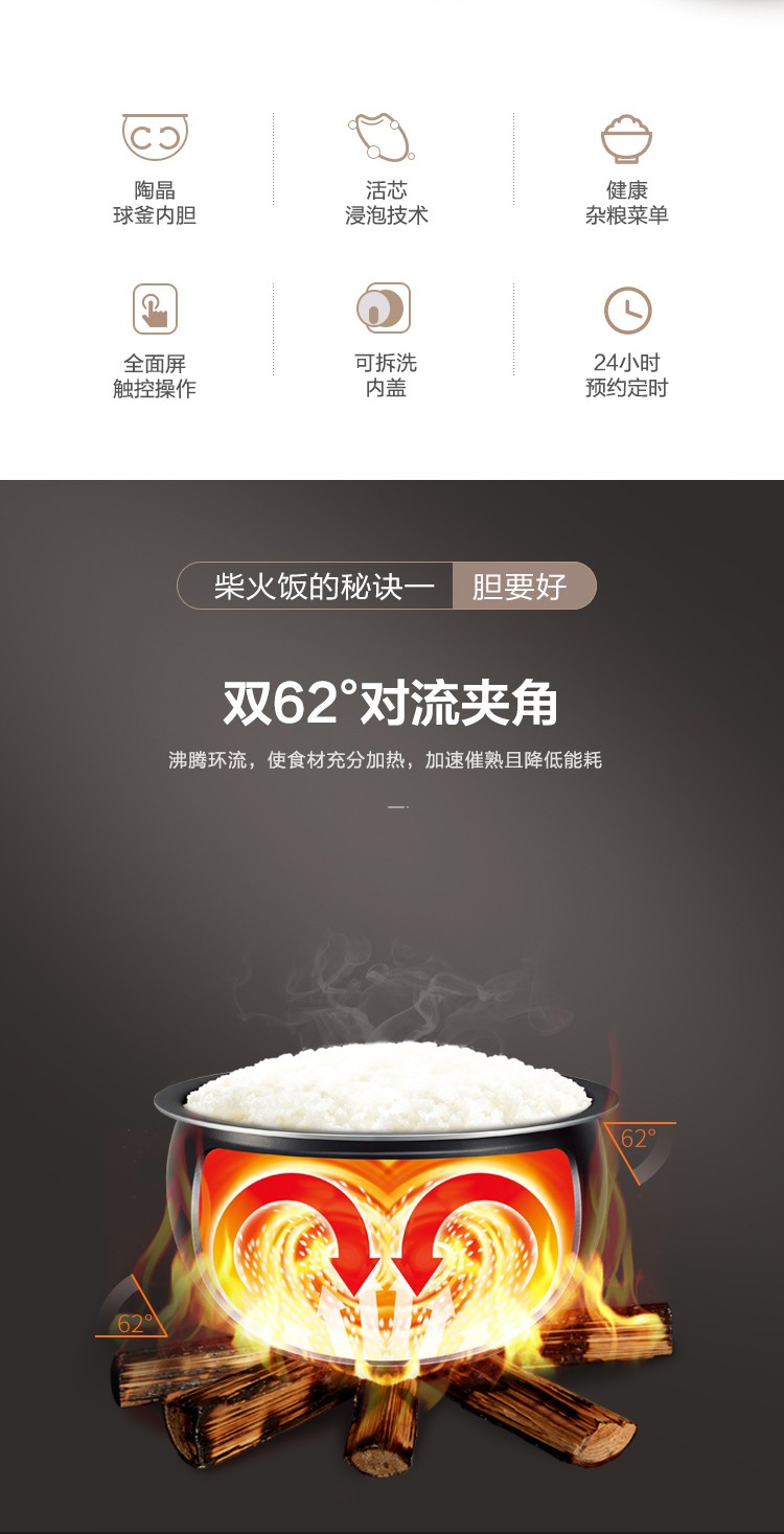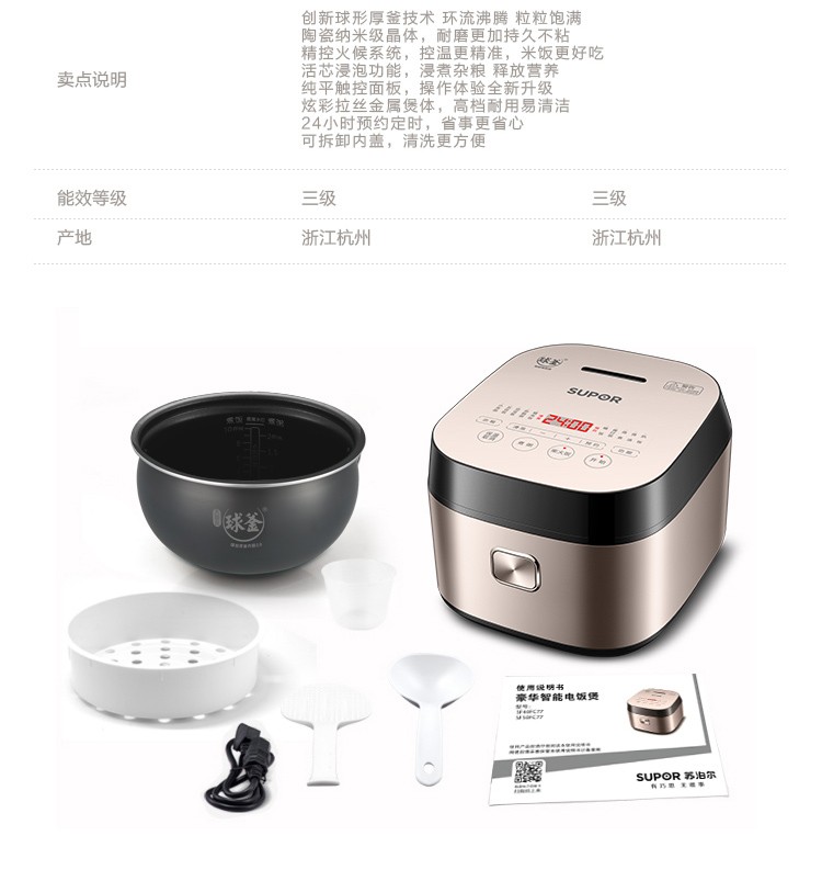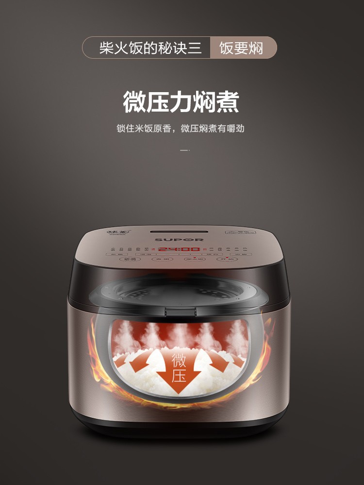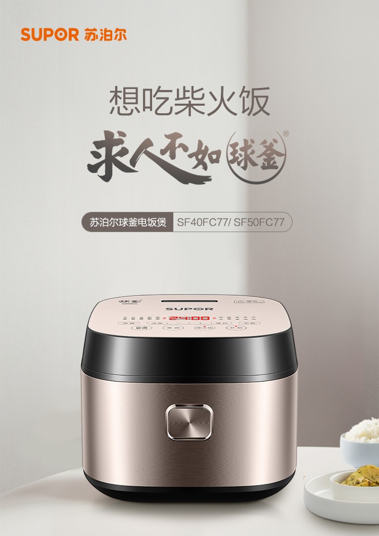 苏泊尔4升家用球釜煮粥煲汤柴火饭多功能智能预约电饭煲SF40FC77