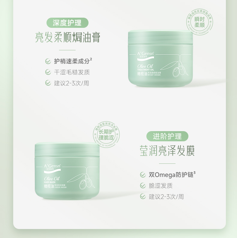 【安安金纯】橄榄油莹润亮泽发膜/亮发柔顺焗油膏(送橄榄油莹润亮泽发膜*2袋)【龙菲精选】