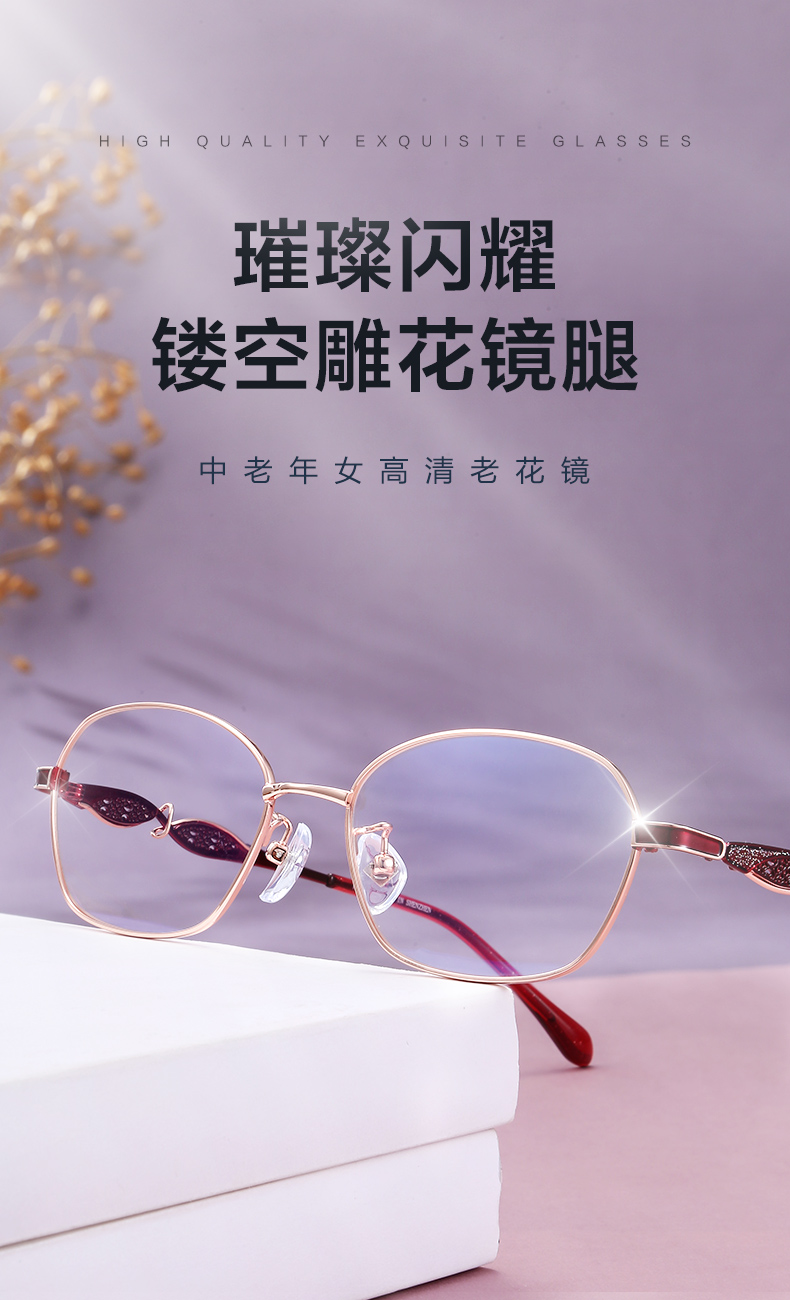普莱斯老花镜PJ9064 合金+板材腿套 优雅大气