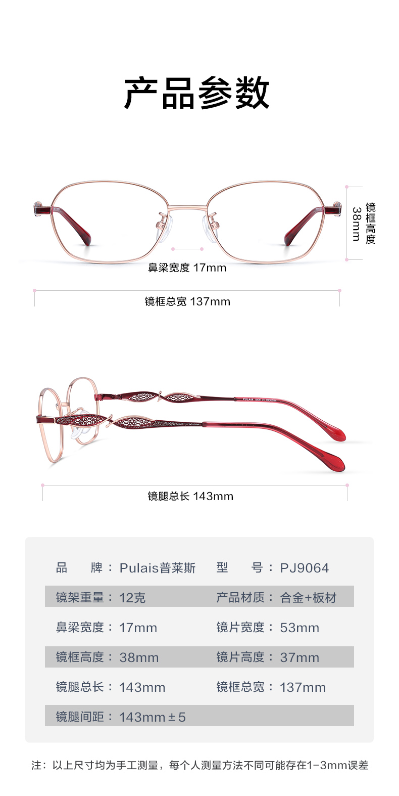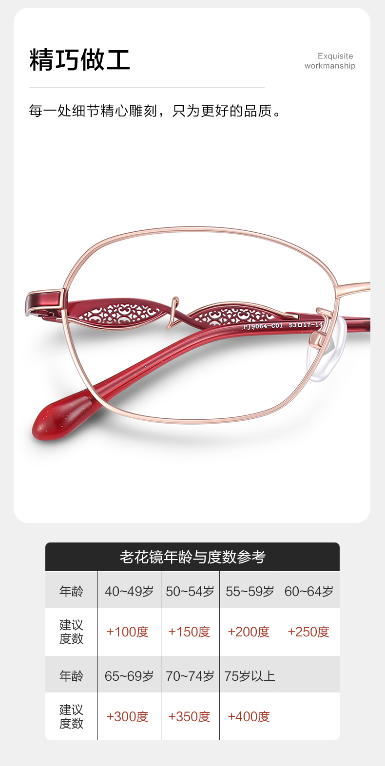 普莱斯老花镜PJ9064 合金+板材腿套 优雅大气 商品图3