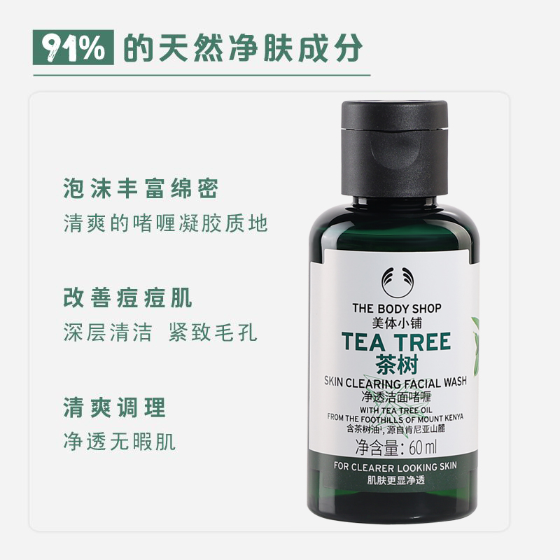 【品名】the body shop美体小铺茶树净透洁面啫喱洗面奶60ml