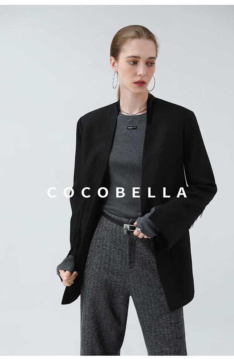 COCOBELLA设计感开叉袖口毛边西装女商务休闲西服外套SI3020
