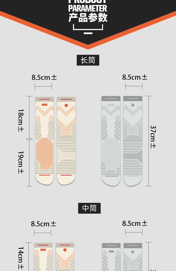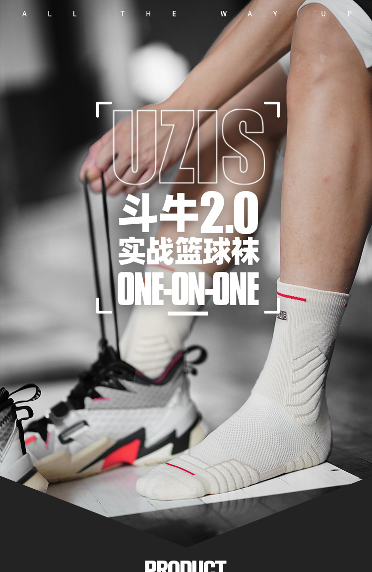 UZIS篮球袜男运动袜子高帮中筒实战毛巾底专业长筒精英袜[斗牛2.0