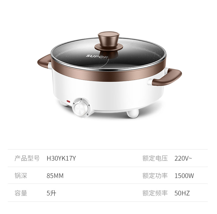 苏泊尔电火锅5L鸳鸯锅H30YK17Y-150