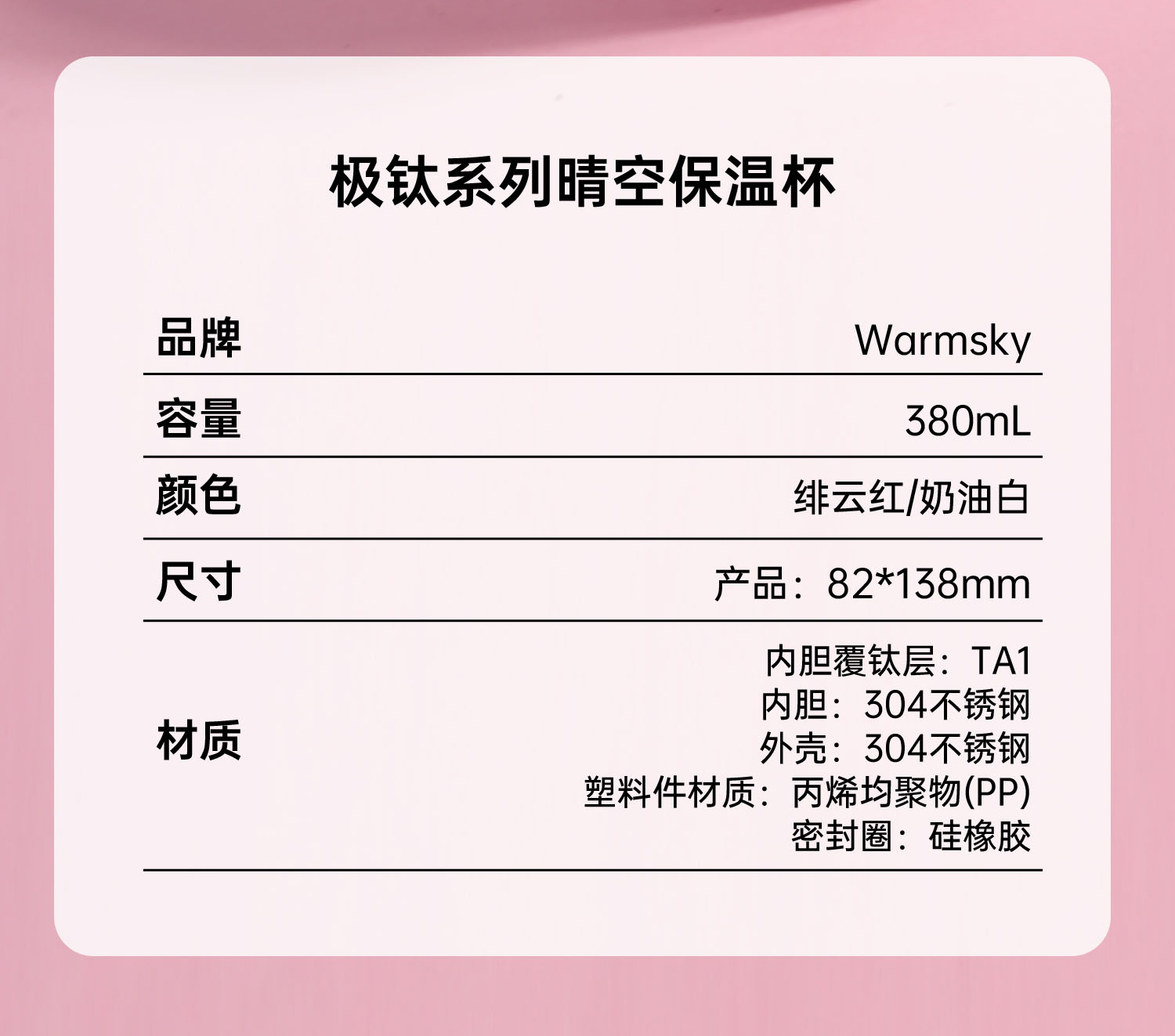 WARMSKY真健康覆钛内胆保温杯 抗菌99%水杯高颜值男女士生日礼物吸管杯380ml