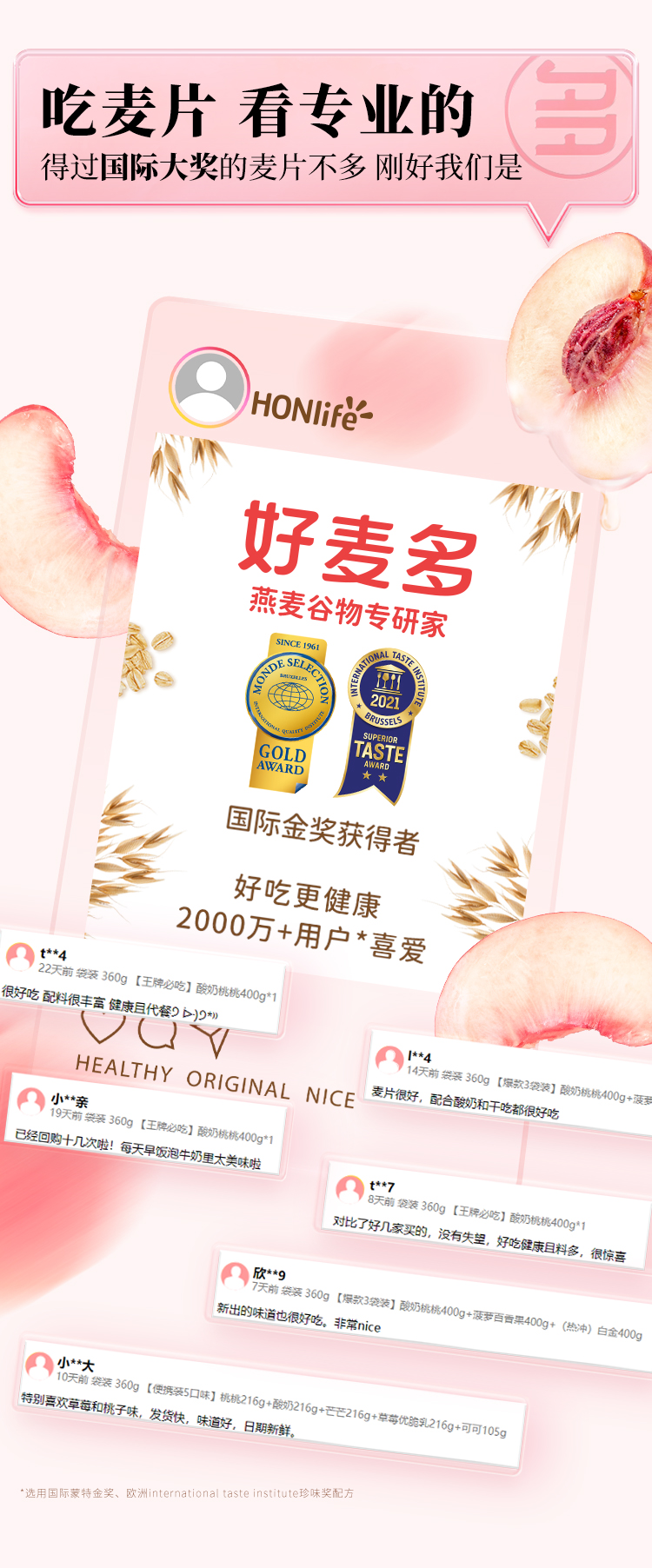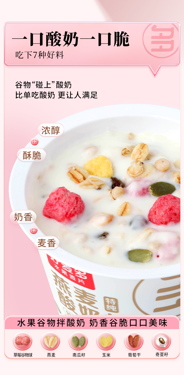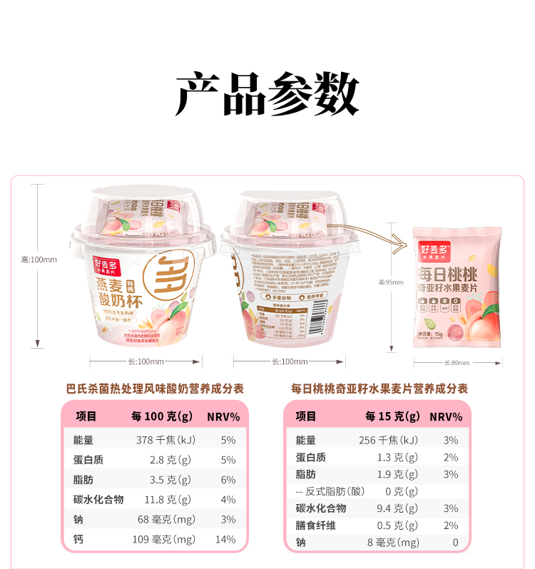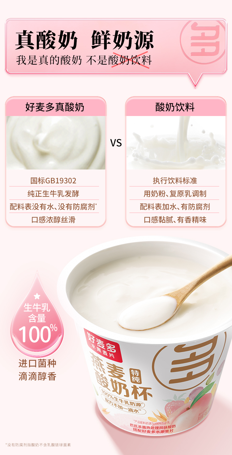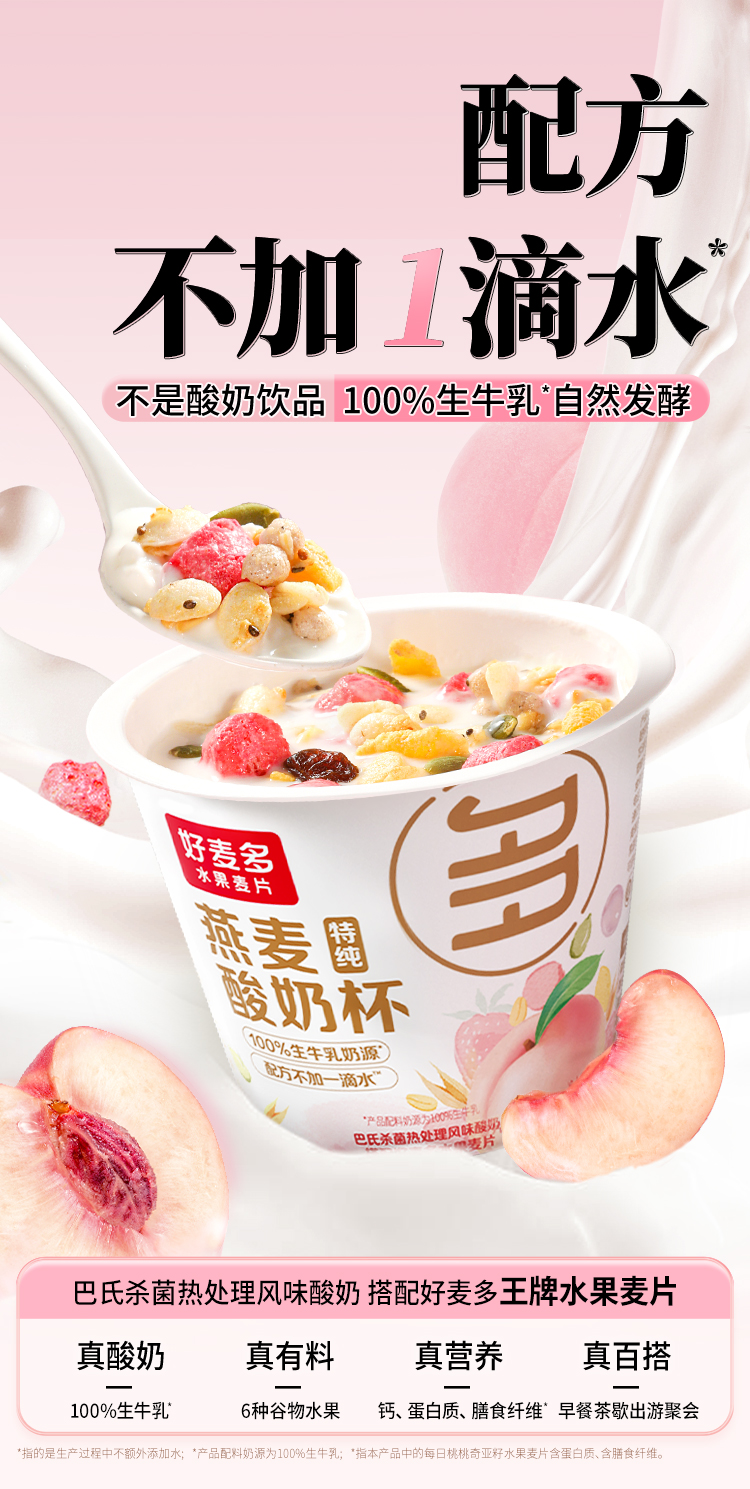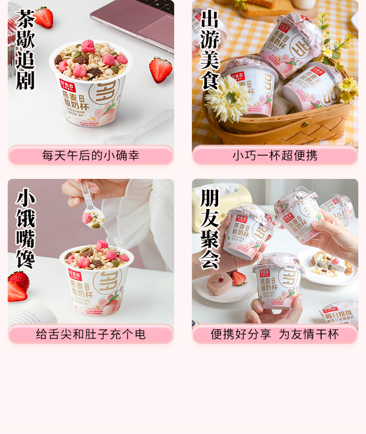 【真酸奶】好麦多桃桃燕麦酸奶杯懒人开盖即食营养早餐箱6杯*160g 优选