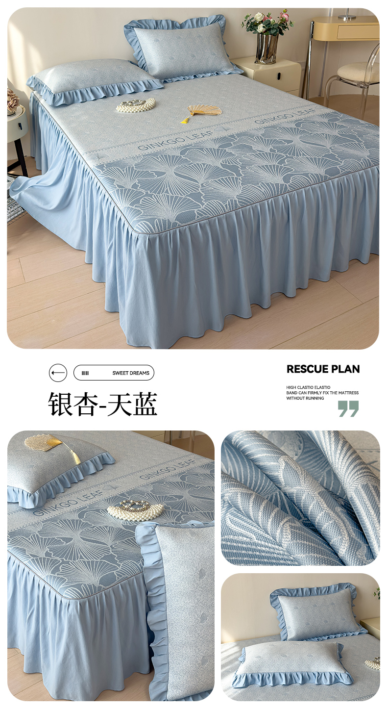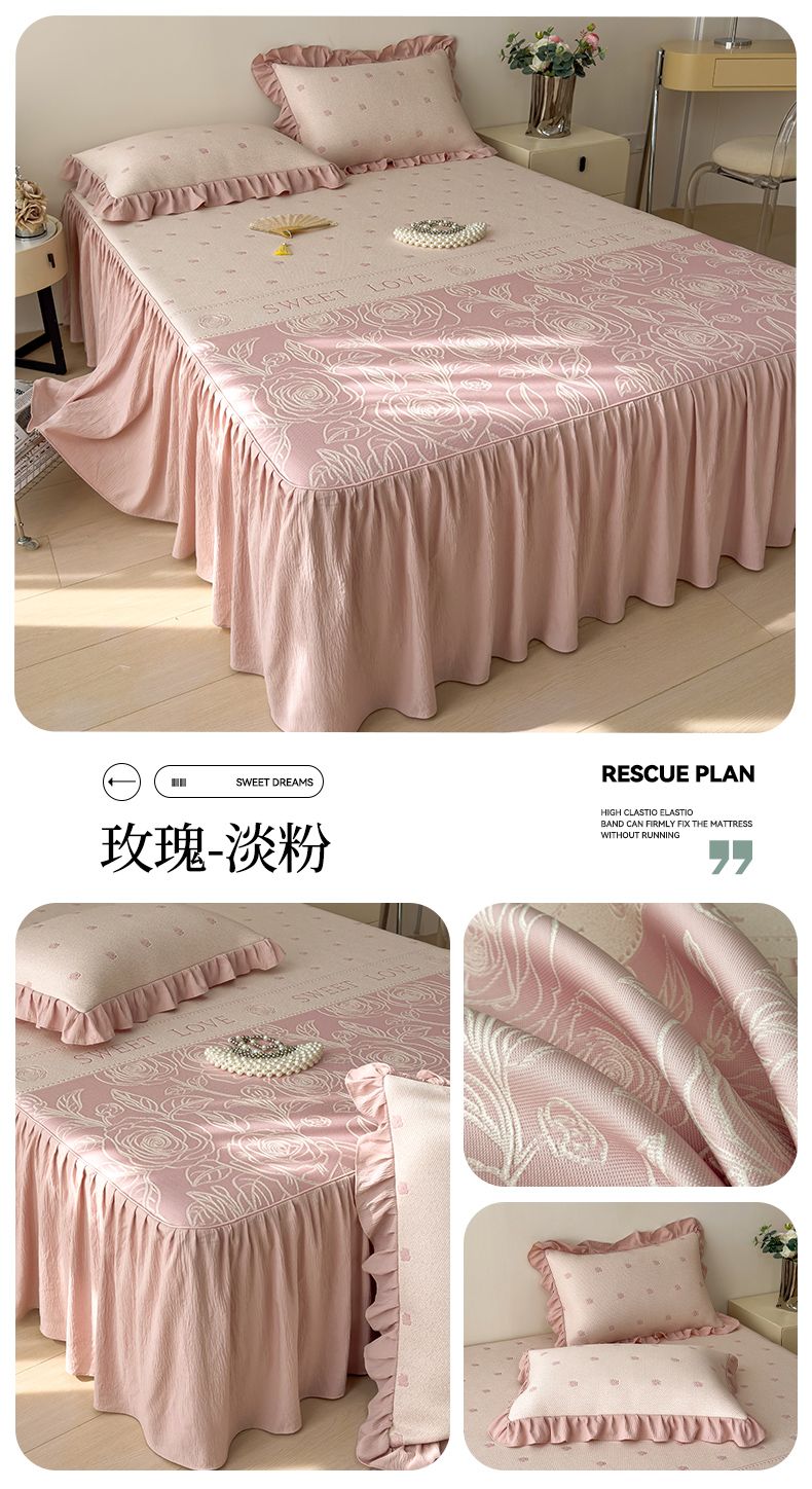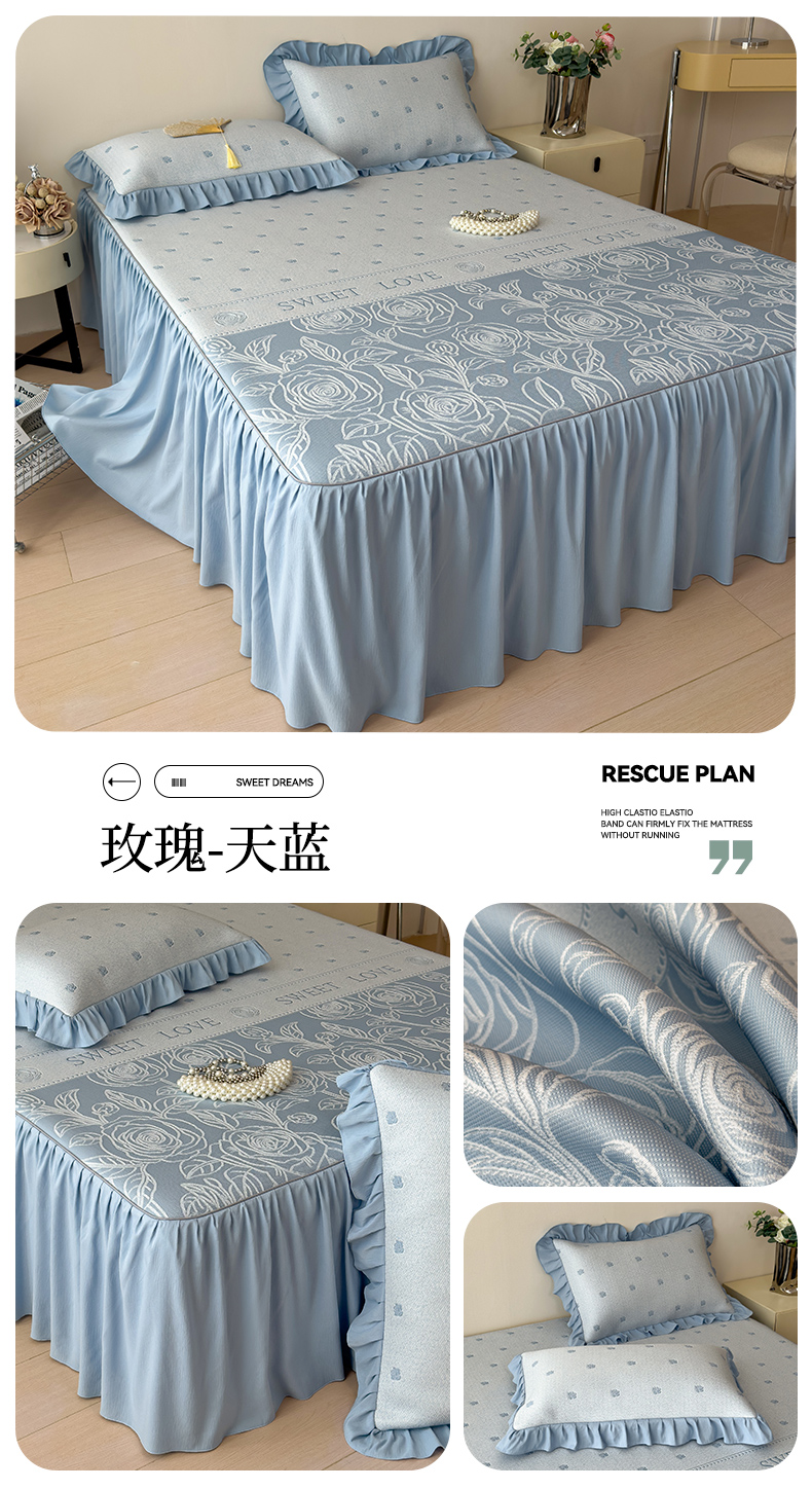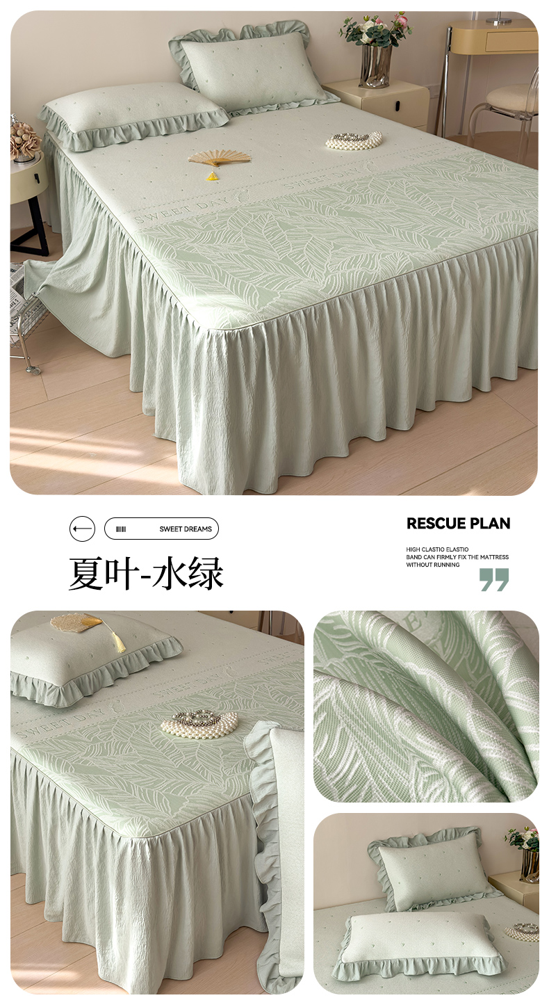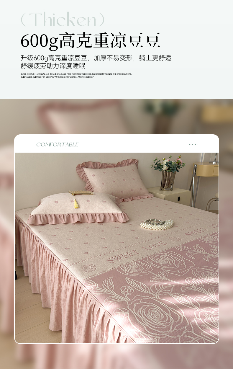 【春夏上新】自然醒A类600克豆豆乙纶全PE轻奢上下拼双面提花床裙款凉感软席(可水洗机洗)QJ