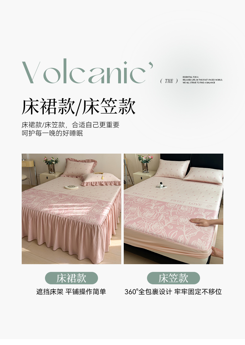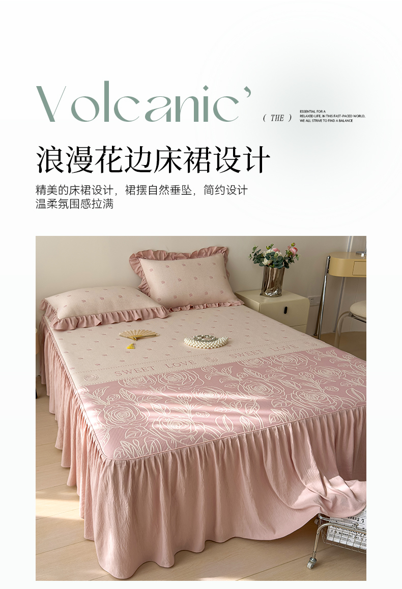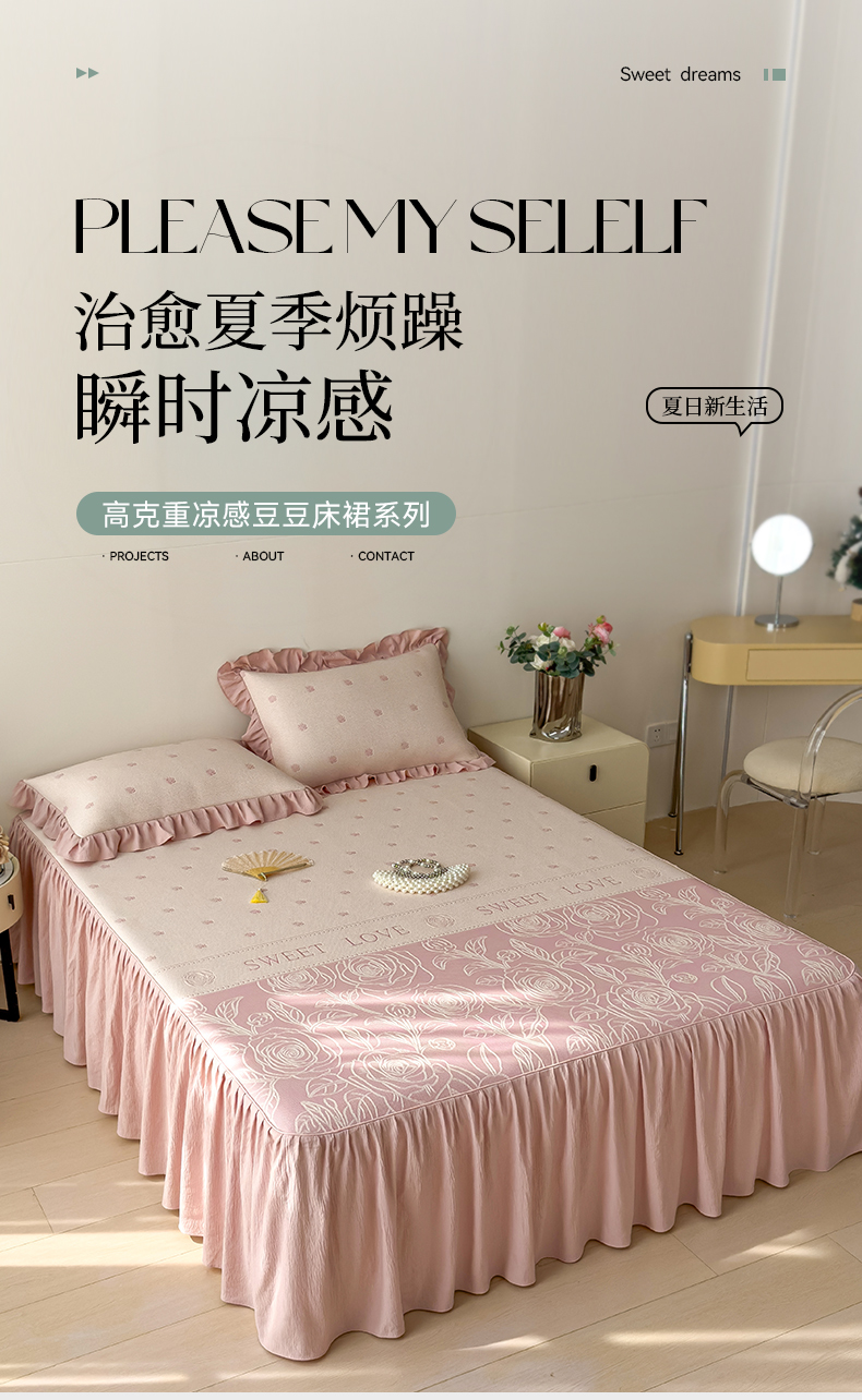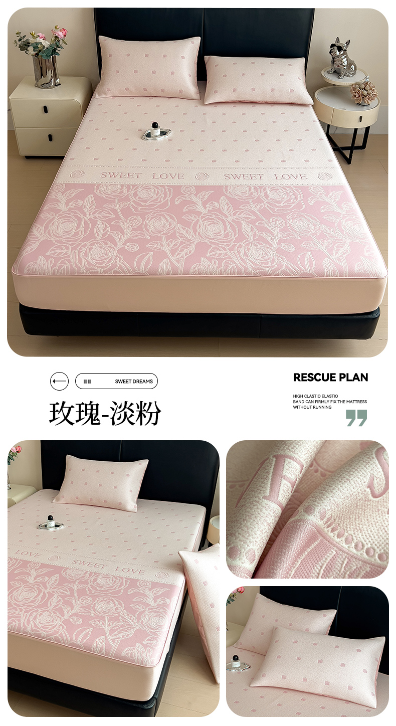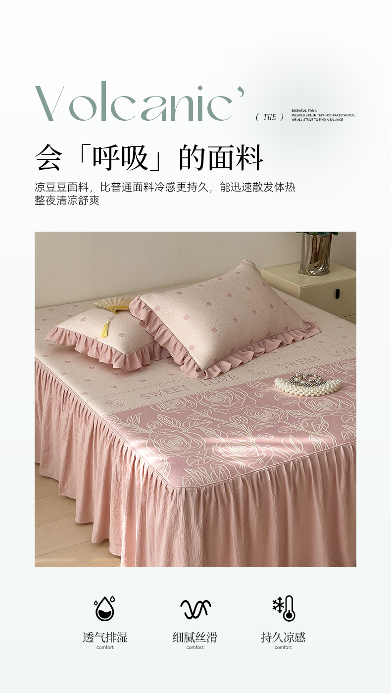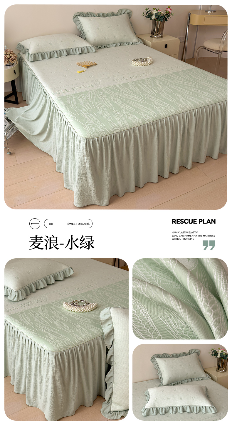 【春夏上新】自然醒A类600克豆豆乙纶全PE轻奢上下拼双面提花床裙款凉感软席(可水洗机洗)QJ