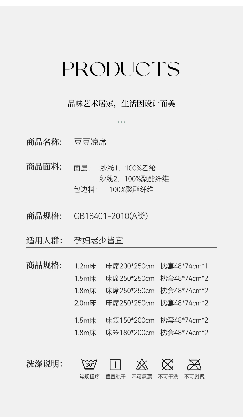 凉席清洗保养卡片
