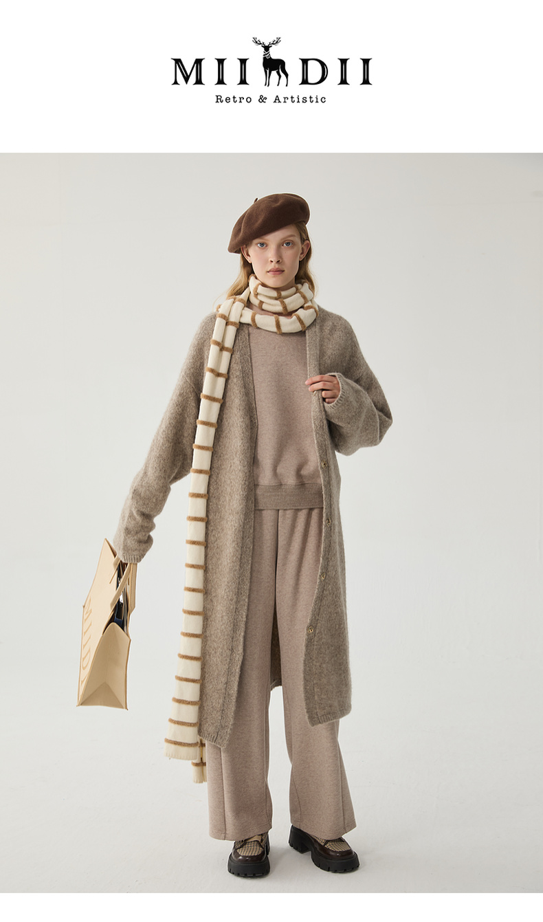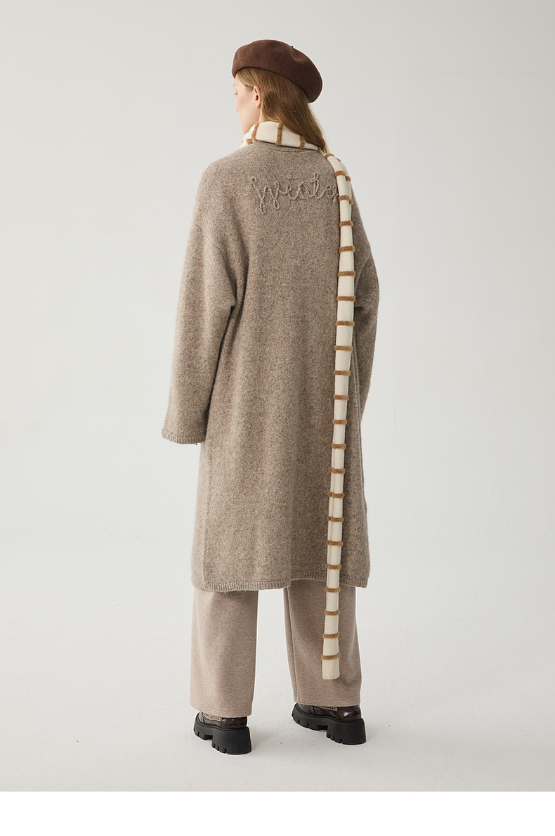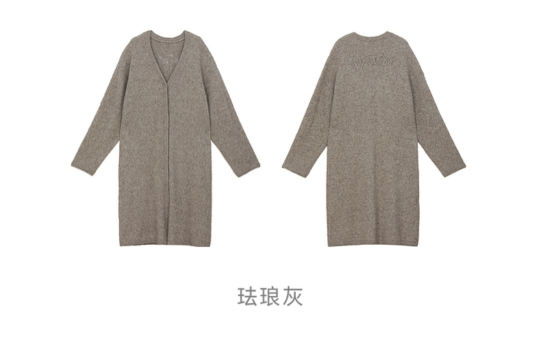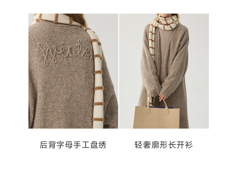 谜底长款针织开衫女2024冬新品慵懒风纯色羊毛保暖毛衣244MZ1869