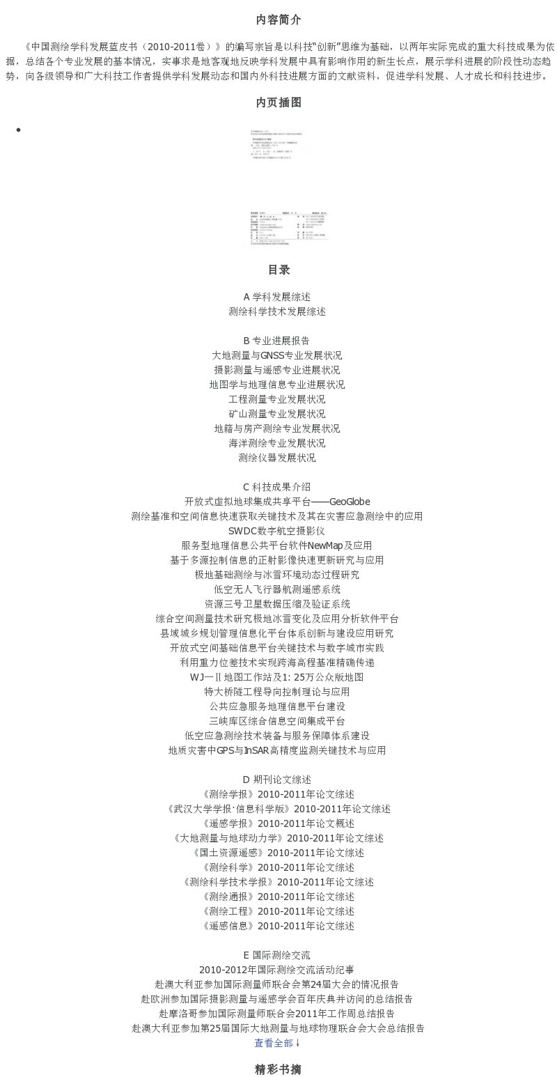 《中国测绘学科发展蓝皮书(2010-2011卷)》