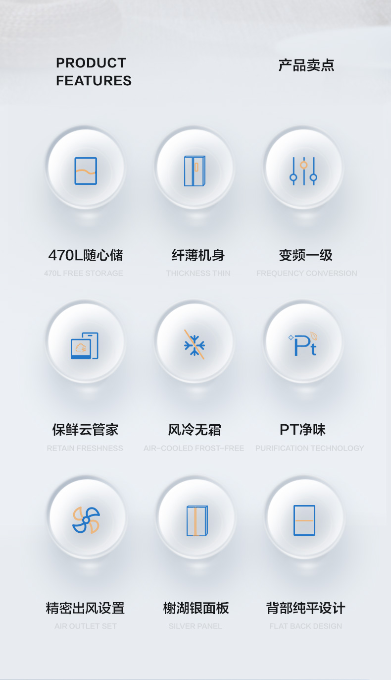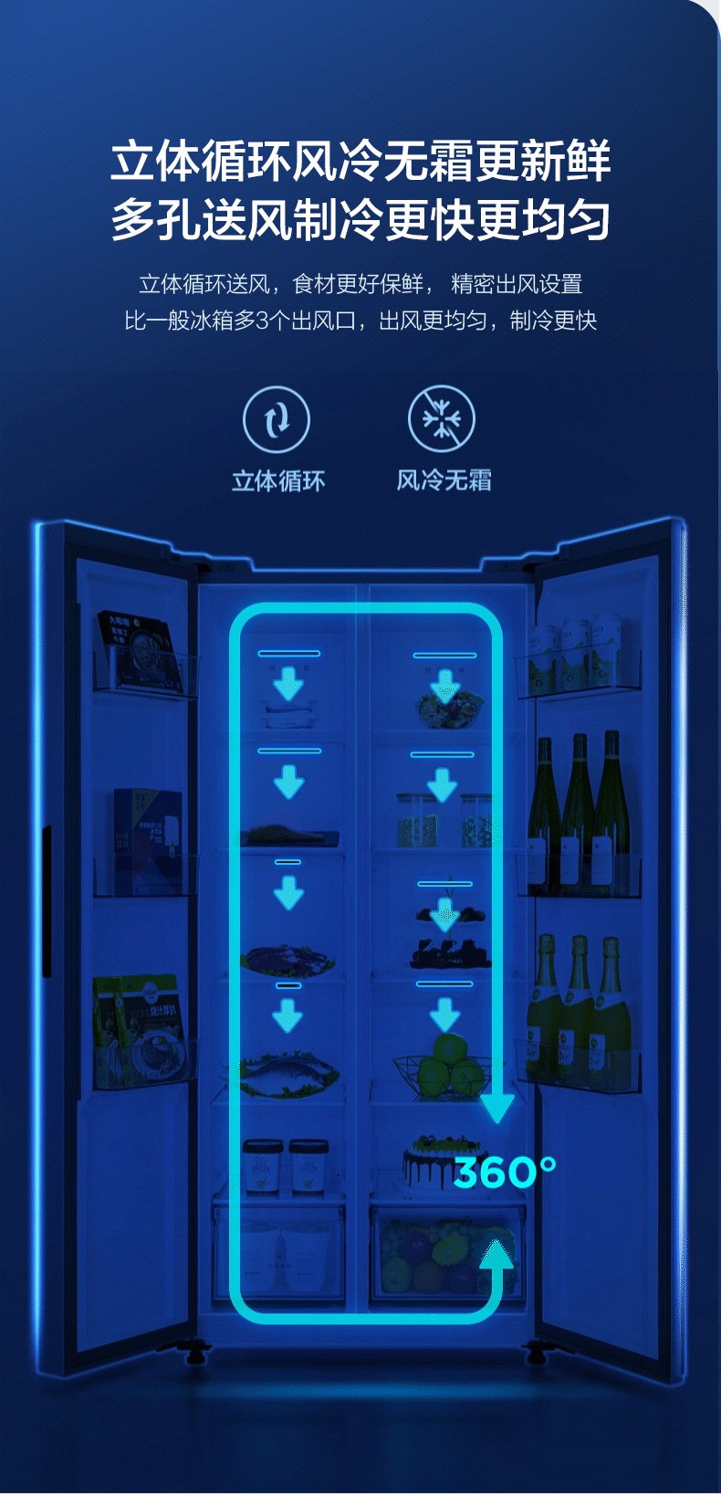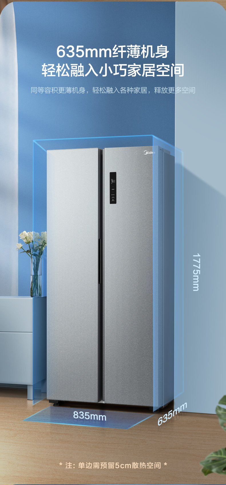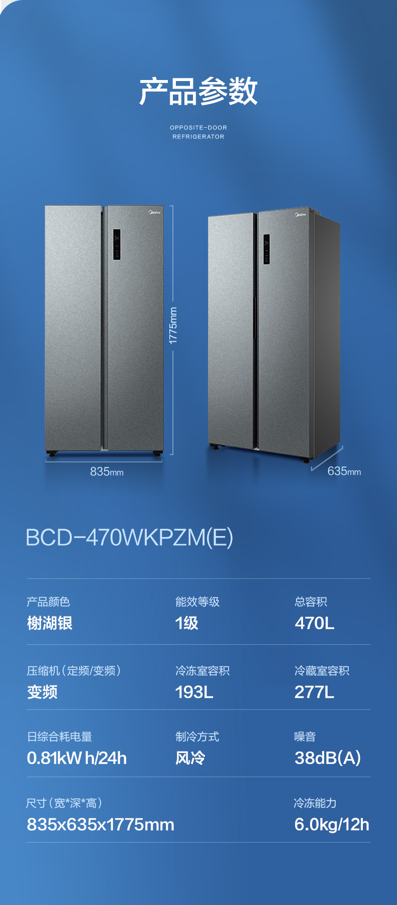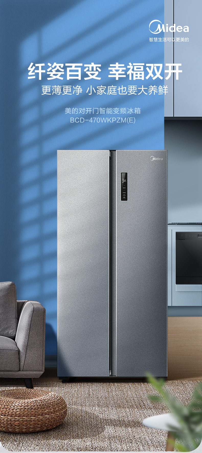美的520升墨兰灰一级净味冰箱大容量变频节能低音省电