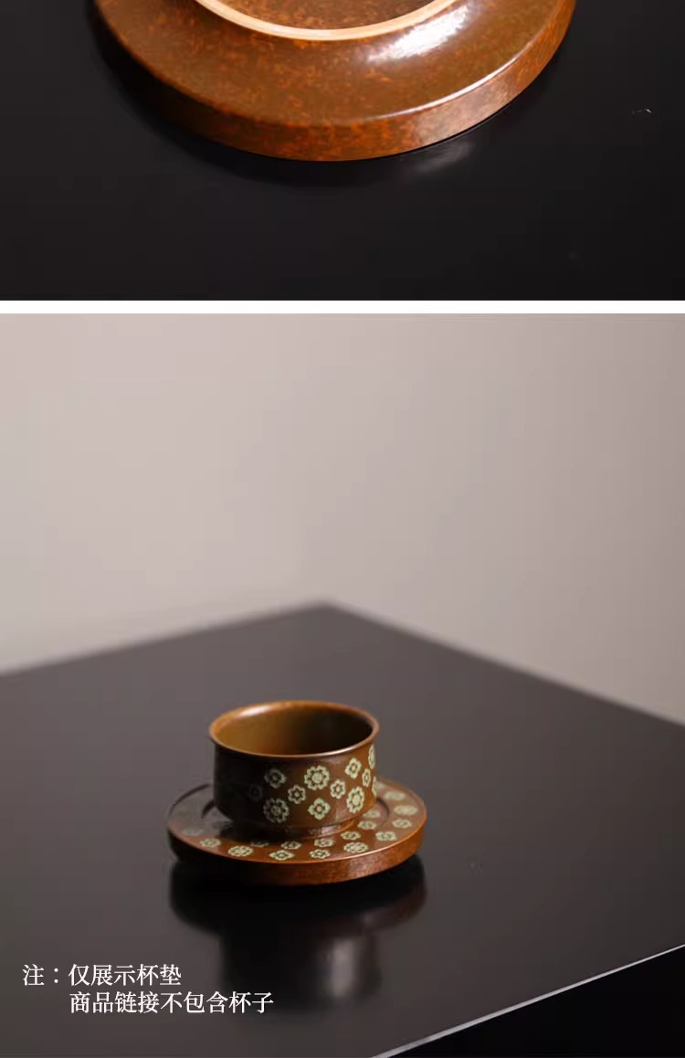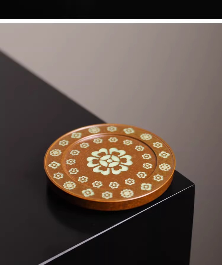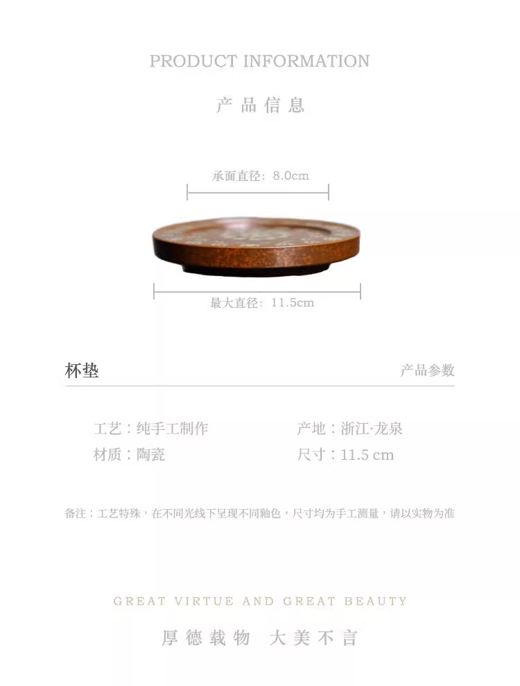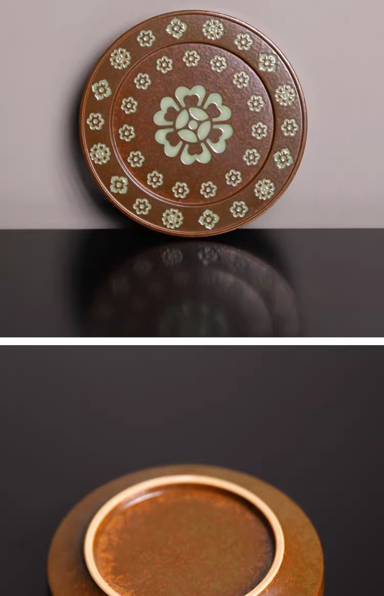 【特惠6折,仅1件,无货退款】草木灰釉唐代琵琶纹小盖置杯垫放盖子的盖托功夫茶具中式家用本土斋-宝相壶承/杯垫(圆)11.4CM【不支持补差,非质量问题不退不换】S