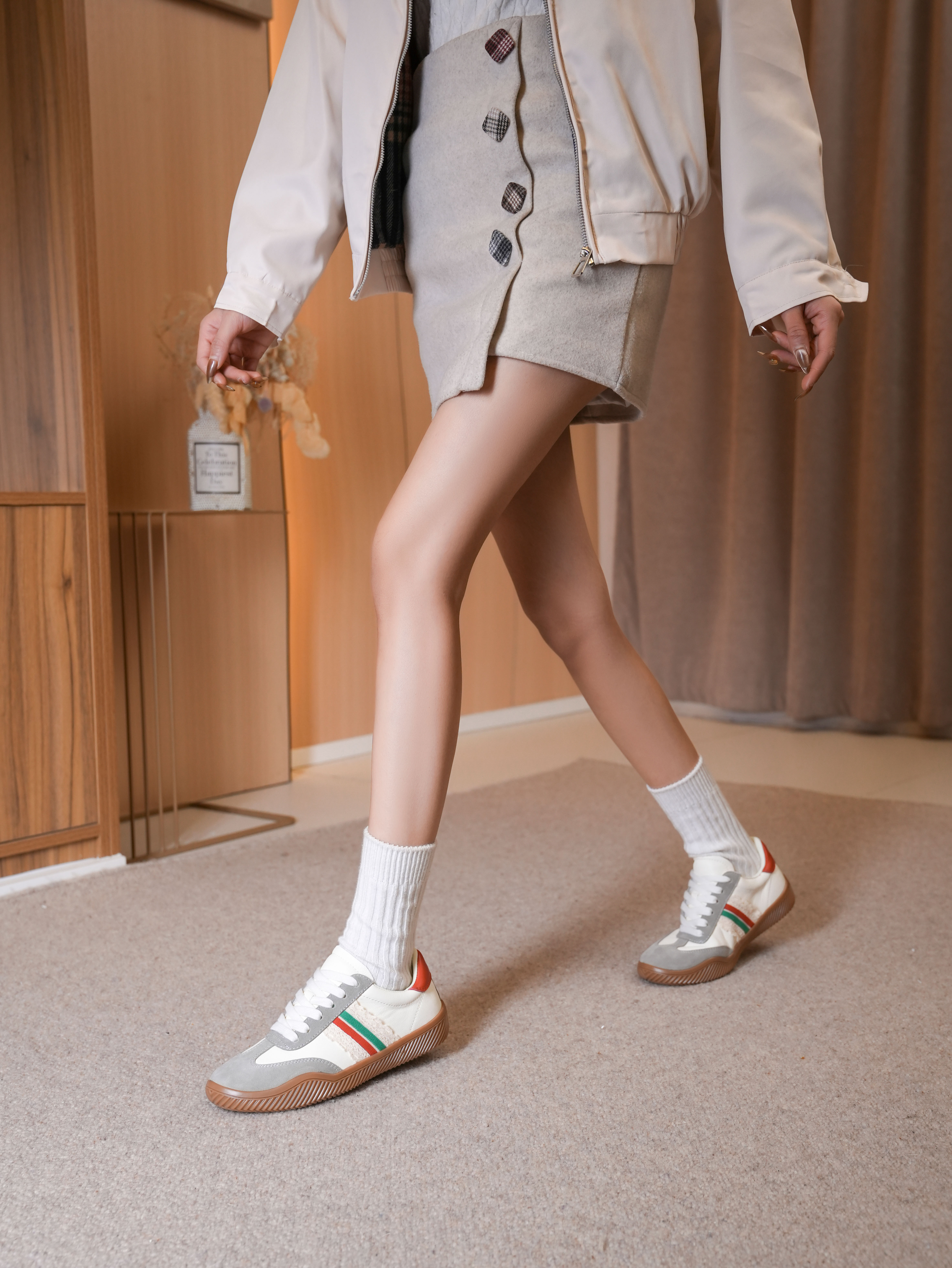 豪麟名鞋迪嘉女鞋时尚休闲鞋牛反绒面革DJJGA52WX022灰色